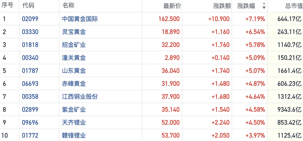 受现货市场强势抬升带动,今日港股矿业股再度大幅拉涨。 截至发稿,中国黄金国际(0209