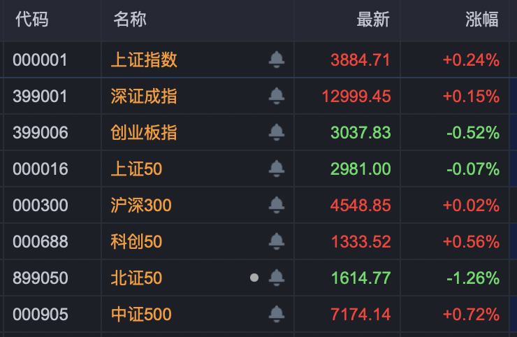 | 今日早盘,A股小幅震荡,上证指数盘中再创近10年新高,深证成指也时隔3年后再度触及13000点,沪深300、中证500等也纷纷创出阶段性新高,市场成交呈现温和放大趋势。 盘面上,电机制造、工业金属、培育钻石、通信工程等板块涨幅居前,玻璃玻纤、农产品加工、游戏、医疗美容等板块跌幅居前。