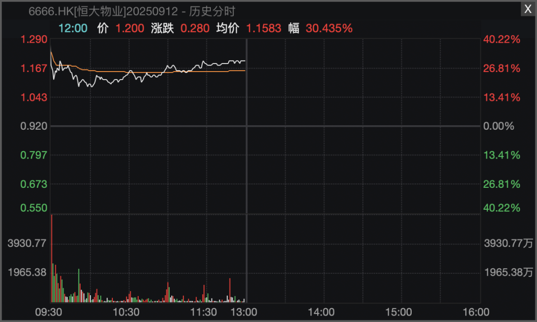 9月以来,机器人板块催化密集。宏观层面,工信部日前表示,我国人形机器人已具备从关键芯片、部组件到整机的全产业链制造能力。国家地方共建人形机器人创新中心预测,今年我国人形机器人销量有望突破1万台,同比增长125%,占全球约50%。 公司层面,智元、优必选先后拿下涉及具身人形智能机器人的订单。宇树科技积极推进IPO筹备工作,预计10月—12月间提交上市申请文件。特斯拉开通名为“Tesla AI”的微博账号,并展示了新版本的Optimus人形机器人。 摩根士丹利表示,机器人技术正重塑中国制造业,为产业升级奠定基础。在人形机器人领域,预计2030年中国拥有25.2万台人形机器人,到2050年将猛增至3.02亿台,中国的人形机器人市场将以每年63%的速度迅速扩张,中国不仅是全球最大的机器人市场,更是全球55%机器人产品的生产基地。 华龙证券认为,人形机器人板块近期催化因素较多,已进入“技术突破→量产降本→场景渗透”的黄金周期,有望成为核心投资主线。建议关注高价值量的零部件,包括丝杠、传感器、电机及减速器等,尤其关注与特斯拉、华为等巨头有供应链合作的公司。 恒大物业复牌大涨 短暂停牌1天后,港股恒大物业今日复牌,开盘一度飙升逾40%,创11个月新高,随后震荡回落,截至发高,仍大涨逾30%,成交由停牌前最后一个交易日3128万港元激增至逾6亿港元。