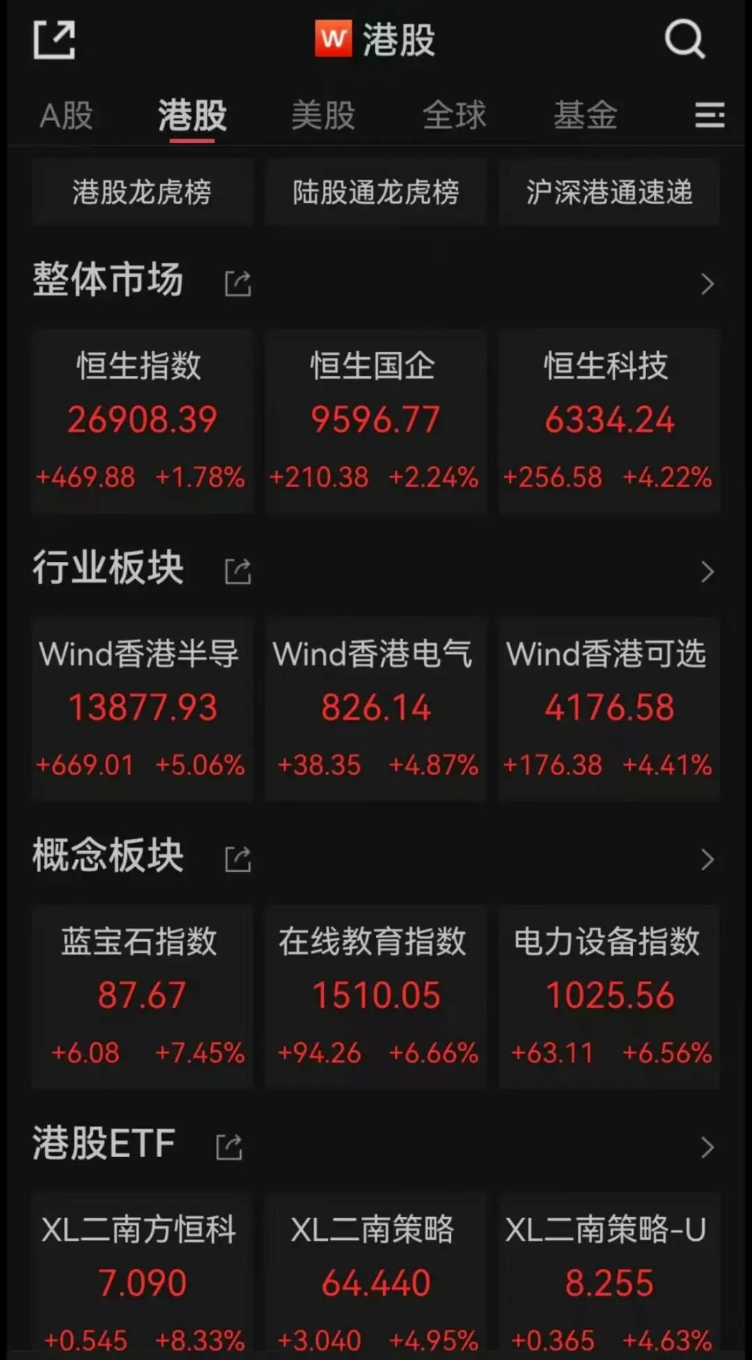 港股开始表现! 当有投资者还在感慨“在港股躲牛市”时,港股已悄然走强。 周三,在多重利好刺激下,港股迎来爆发:恒生科技指数大涨超过4%,一举创下近四年新高;恒生指数收涨1.78%,逼近27000点重要关口,也创四年多新高。 科技股全线上涨,成为昨日行情的主要引擎。截至收盘,商汤、百度均涨超15%。阿里巴巴涨5.28%,创2021年10月以来新高,市值重回3万亿港元。阿里巴巴、腾讯等互联网巨头持续创阶段新高再度引发市场热议。 消息面上,除了香港特区行政长官李家超发表2025年《施政报告》,提及多项金融和科技发展举措,百度、阿里巴巴等互联网公司均在前沿人工智能方向有新的进展。 港股近期涨势能否延续?美联储领衔的降息周期开启,港股是否受益?还有哪些热点值得关注? 受访基金公司普遍认为,港股估值不高、中美经贸谈判顺利、美联储降息预期、国内AI进展加速,以及相对于A股的稀缺性等因素,共同驱动港股回暖。在新一轮降息周期中,港股有望率先受益。虽然前期上涨带来估值修复,但港股仍有一定吸引力。科技、医药、新消费等港股热门的资产依然不贵。