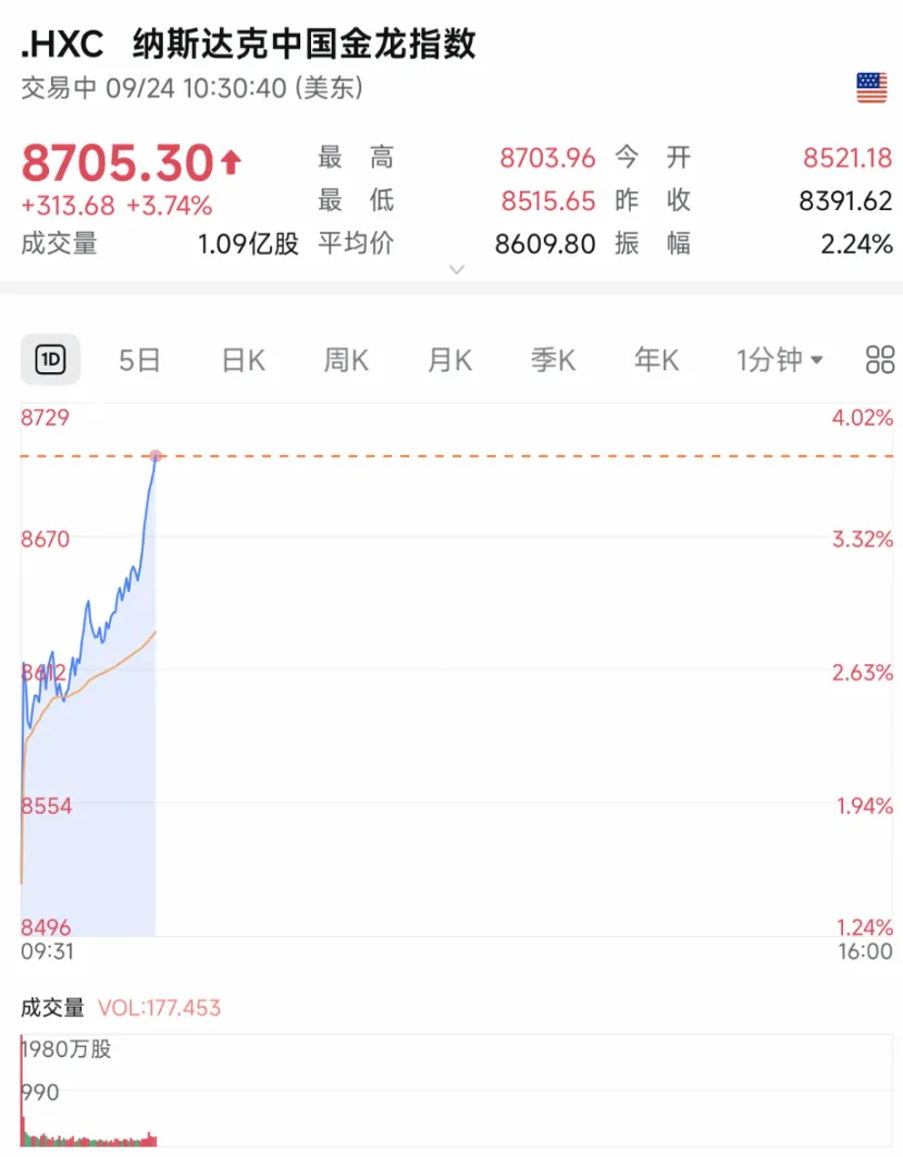 早上好,先来关注下海外市场。 美国政府寻求入股,美洲锂业股价暴涨95.6% 9月24日晚间,Lithium Americas(美洲锂业)股价暴涨。 截至今晨收盘,美洲锂业股价上涨95.6%。 消息面上,据路透社报道,有业内人士称,美国政府正在寻求获得美洲锂业高达10%的股权,希望拥有美国最大锂矿的权益。 路透社评论称,这笔股权投资是美国政府直接干预美国经济的最新例证。美国政府此前已通过入股英特尔、MP Materials等美国科技和矿产公司,以促进其认为对国家安全至关重要的行业发展。 美国政府之所以把目光聚焦于美洲锂业公司,或许与Thacker Pass锂矿项目有关。 通用汽车今年2月宣布斥资6.5亿美元投资美洲锂业,拟共同开发位于内华达州北部的美国最大锂矿Thacker Pass。该锂矿预计将于2028年开始投入运营,届时将成为西半球最大的锂矿产地,每年可为多达100万辆电动车提供电池原料。根据协议,美洲锂业公司将持有该项目62%的股权,通用汽车持有38%股权。 从股权结构来看,若美国政府成功获得美洲锂业公司10%的股份,就有望成为该公司最大的股东之一。 中国资产大涨,国际铜价大涨 9月24日晚间,美股开盘后,中国资产集体大涨,纳斯达克中国金龙指数大涨3.74%,两倍做多中国互联网股票ETF暴涨超6%,三倍做多富时中国ETF大涨超4%,中国海外互联网ETF涨超3%,中国科技ETF涨超2%。 ![]() 阿里巴巴暴涨超10%,创2021年10月以来的最高水平。此前阿里巴巴宣布会在3800亿元的基础上增加更多投入,并与英伟达开展Physical AI合作。 其他热门中概股亦全线走高,万国数据、大全新能源暴涨超12%,世纪互联、小牛电动大涨超10%,百度大涨超8%,京东涨超7%,老虎证券、富途控股、金山云涨超5%,蔚来、小马智行、微博涨超4%,贝壳、哔哩哔哩涨超3%,拼多多、理想汽车、小鹏汽车等涨超2%。 当前,中国资产正吸引越来越多国际投资者的关注。当地时间9月22日,方舟投资的掌门人凯茜·伍德旗下ETF向中概股投资了约2100万美元,涉及的股票包括阿里巴巴集团、百度和小马智行等中国科技股。 截至收盘,纳斯达克中国金龙指数收涨2.83%,热门中概股普涨。 商品方面,全球铜价大幅上涨。伦铜价格涨3.50%,创2024年6月以来最高水平;沪铜价格涨超3%。 ![]() 昨晚美国矿业巨头Freeport McMoRan股价盘初一度暴跌近11%。其印尼子公司Grasberg矿山发生泥石流事故,已造成两名工人死亡,另有五名工人下落不明。 目前这座全球第二大的铜矿因事故已暂停生产,公司已启动不可抗力条款。Freeport预计,该铜矿最早要到2027年才能恢复事故前的生产水平,2026年铜金产量预计将下降35%。 分析人士:关注A股市场结构性机会 再把目光转向国内市场。 A股昨日全线走高,创业板指、科创50指数创阶段新高。具体来看,上证综指涨近1%;创业板指涨超2%,创逾3年新高;科创50指数一度大涨超5%,创近4年新高。 截至收盘,上证综指涨0.83%报3853.64点,深证成指涨1.8%报13356.14点,创业板指涨2.28%报3185.57点,科创50指数涨3.49%。沪深北三市合计成交23475亿元,较此前一日减少约1700亿元。股指期货方面,IF涨逾1%,IC和IM涨超3%。 值得一提的是,昨日是A股市场“9·24”行情一周年,数据显示,这一年来,上证综指累计涨超40%,深证成指累计涨超65%,创业板指累计涨超100%。 事实上,自9月以来,A股进入高位震荡阶段,市场结构分化明显。对此,正信期货宏观首席分析师蒲祖林表示,当前市场分歧加大。一方面,在流动性宽松和资产荒背景下,场外资金涌入股市,居民存款持续“搬家”,外资也持续流入A股。另一方面,随着宏观利多预期相继兑现,市场估值上升到历史偏高水平,部分获利资金开始离场。 在徽商期货研究所分析师李永东看来,当前市场正处于多空因素交织下的再平衡与预期重构阶段。一方面,上证综指、创业板指涨至高位,大资金操作偏谨慎,同时趋势呈现多头排列,下跌仍有资金支撑,所以近期高位震荡。另一方面,市场继续分化,资金在不同指数或者板块里高低切换,也会造成市场剧烈波动。 “前期A股大涨主要受美联储降息预期拉动,叠加情绪面整体偏积极,两市成交活跃,放大指数上行幅度。而美联储降息后,部分资金止盈离场,短期市场进入震荡阶段,等待进一步的方向指引。”南华期货权益与固收研究分析师王映表示。 宏观层面,中美元首通话后,中美关系迎来阶段性改善。对此,蒲祖林表示,这无疑是向全球金融市场注入了一剂强心剂,一定程度上降低了地缘冲突带来的风险,也为中美两个大国宏观货币和财政政策的连续性定下基调。 在李永东看来,中美关系阶段性改善对A股市场构成利好。“一方面,全球地缘政治风险显著下降,有利于提升投资者的风险偏好,可能吸引外资回流A股;另一方面,中美可能在多个领域展开合作,部分板块估值有望得到修复。但我们也需要认识到,这种提振更多是情绪和估值层面的,经济基本面依然主导市场中长期走势。”李永东说。 此外,王映表示,美国关税政策带来的影响,预计会在四季度完全显现。“具体来看,前期抢出口、抢转口带来外部需求前置;部分国家与美国签订贸易协定,国内企业转口贸易成本大幅提升,会对出口形成一定冲击。”王映表示,在中美经贸谈判没有进一步进展时,美国关税带来的负面影响或边际增加。若中美经贸谈判出现新进展,则短期从情绪面、长期从基本面利好A股。 值得注意的是,昨日市场反弹伴随着成交额缩量和期指减仓,这