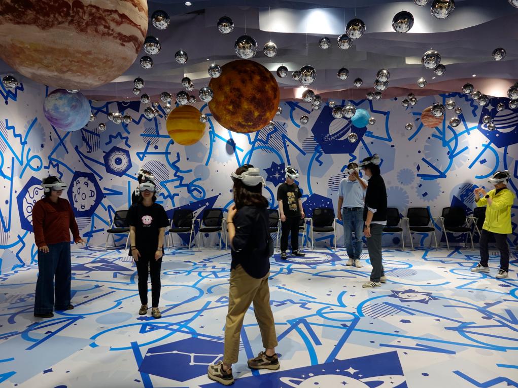 5月16日,游客在徐家汇书院体验XR沉浸式体验项目。新华社发 科技拉近人们与文旅资源的距离,也帮助人们拓展文旅体验的深度。在上海东方明珠新媒体股份有限公司总编辑戴钟伟等业界人士看来,科技极大地提升用户体验,让消费者愿意“埋单”的关键是优质的内容。 走进上海自然博物馆内“龙吟九州·中国恐龙大展”展厅,人们可以裸眼看见中生代时期不同地貌环境下缓缓移动的恐龙;小观众挥动手势,给不同种类的恐龙投喂食物;观众还能见到跃然于化石展品上灵活飞行、爬行的小恐龙投影,仿佛恐龙“复活”了。 迎接国庆节假期,上海自然博物馆还借助人工智能技术让“明星住户”和平永川龙“走”出博物馆,到上海南京路逛街,到湖北武汉“过早”,到吉林长白山滑雪,带观众领略我国大好河山。