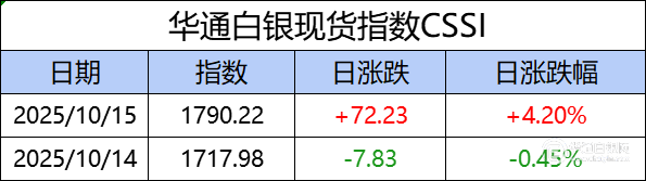 华通白银现货指数CSSI走势日报,今日指数1790.22,日涨跌+72.23,日涨跌+4.20%
