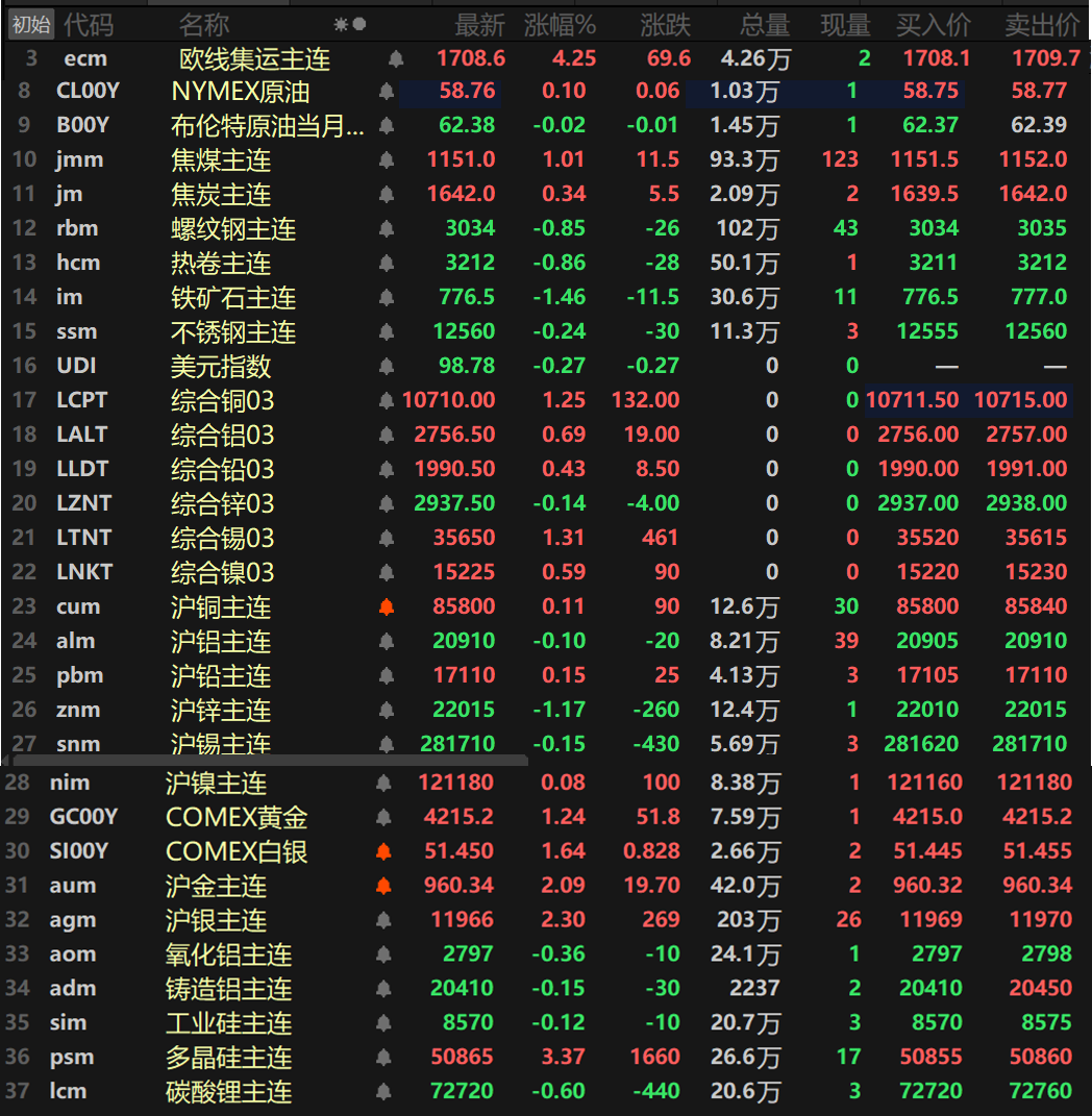 SMM 10月15日讯: 金属市场: 截至日间收盘,内盘基本金属涨跌互现,沪铅涨0.15%,沪铜涨0.11%,沪锌以1.17%的跌幅领跌,其余金属涨跌幅波动均不大。氧化铝主连跌0.36%,铸造铝主连跌0.15%。 此外,碳酸锂主连跌0.6%,工业硅主连跌0.12%,多晶硅主连涨3.37%。欧线集运主连涨4.25%报1708.6。 黑色系方面普跌,铁矿以1.46%的跌幅领跌,螺纹、热卷一同跌超0.8%,螺纹跌0.85%,热卷跌0.86%。双焦方面,焦煤涨1.01%,焦炭涨0.34%。 外盘方面,截至15:02分,外盘基本金属普涨,仅伦锌唯一下跌,跌幅达0.14%。伦铜、伦锡一同涨逾1%,伦铜涨1.25%,伦锡涨1.31%。其余金属涨幅波动均在1%以内。 贵金属方面,截至15:02分,COMEX黄金1.24%,其盘中最高冲至4217.5美元/盎司,接连续刷其上市以来的历史新高;COMEX白银涨1.64%。国内方面,沪金涨2.09%,其盘中最高冲至960.42元/克,续刷历史新高;沪银涨2.3%。 截至今日15:02分行情 》点击查看SMM行情看板 宏观面 国内方面: 【国家统计局:9月CPI环比上涨0.1% PPI同比降幅继续收窄】国家统计局数据显示,2025年9月份,全国居民消费价格同比下降0.3%。其中,城市下降0.2%,农村下降0.5%;食品价格下降4.4%,非食品价格上涨0.7%;消费品价格下降0.8%,服务价格上涨0.6%。1—9月平均,全国居民消费价格比上年同期下降0.1%。9月份,全国居民消费价格环比上涨0.1%。其中,城市持平,农村上涨0.2%;食品价格上涨0.7%,非食品价格下降0.1%;消费品价格上涨0.3%,服务价格下降0.3%。国家统计局数据还显示,2025年9月份,全国工业生产者出厂价格同比下降2.3%,降幅比上月收窄0.6个百分点,环比继续持平。工业生产者购进价格同比下降3.1%,降幅比上月收窄0.9个百分点,环比上涨0.1%。1—9月平均,工业生产者出厂价格比上年同期下降2.8%,工业生产者购进价格下降3.2%。国家统计局城市司首席统计师董莉娟解读2025年9月份CPI和PPI数据。》点击查看详情 【《求是》杂志评论员:进一步稳定市场预期】,《求是》杂志评论员文章称,预期管理是宏观经济治理的重要内容,是做好经济工作的重要抓手。巩固拓展经济回升向好势头,既要注重供需平衡调控,也要注重预期管理与引导,不断提高宏观调控效能,提振社会发展信心。进一步稳定市场预期,要及时回应市场关切,增强政策可预期性。经济主体的决策高度依赖对未来政策的预期。根据形势变化及时实施精准有力的宏观政策,增强政策可预期性,是引导市场形成积极预期的关键。面对当前有人担心稳就业稳经济政策力度可能变化等问题,要及时有效回应市场关切,落实落细各项宏观政策,增强政策针对性和实效性,以政策的可靠性稳定性确保市场预期不摇摆。高度重视宏观数据与微观感受的“温差”问题,主动帮助群众和企业解决困难,让经营主体和人民群众真正有获得感,形成积极预期。随着宏观经济治理的复杂性明显上升,增强宏观政策取向一致性,防止出现“合成谬误”或“分解谬误”,是稳定市场预期的重要方面。要把握好政策实施的时机、力度、节奏,把经济政策和非经济性政策统一纳入宏观政策取向一致性评估,多出有利于稳增长、稳预期的政策,慎重出台可能产生收缩和抑制效应的政策,使政策效果更符合预期。 【国家统计局:9月金饰品和铂金饰品价格分别同比上涨42.1%和33.6%】国家统计局数据显示,9月,扣除食品和能源价格的核心CPI同比上涨1.0%,涨幅连续第5个月扩大,为近19个月以来涨幅首次回到1%。其中,扣除能源的工业消费品价格上涨1.8%,涨幅连续第5个月扩大。工业消费品中,金饰品和铂金饰品价格分别上涨42.1%和33.6%,家用器具、家庭日用杂品和通信工具价格分别上涨5.5%、3.2%和1.5%,涨幅均有扩大。 【央行公开市场今日净投放435亿元】央行今日开展435亿元7天逆回购操作,操作利率为1.40%,与此前持平。因今日无逆回购到期,当日实现净投放435亿元。 ►10月15日银行间外汇市场人民币汇率中间价为1美元对人民币7.0995元 美元方面: 截至15:02分,美元指数跌0.27%报98.78。美国联邦政府继续停摆,这部分不确定性仍然存。据央视新闻客户端,当地时间10月14日,美国国会参议院未能通过程序性投票,无法推进共和党提出的一项临时拨款法案。据悉,该临时拨款法案若通过,将为政府提供资金直至11月21日,但该法案并未涉及民主党提出的任何医疗保健要求。 美联储主席鲍威尔表示,美国劳动力市场在整个9月仍陷于“低招聘、低裁员”的低迷状态,尽管经济可能处于 "比预期略更稳健的轨道上"。他指出,政策制定者将采取“逐次会议”的方式来决定是否降息,以在就业市场疲软与高于目标的通胀之间寻求平衡。他还暗示缩表接近尾声。 国际货币基金组织(IMF)在世界经济展望报告中上调对2025年全球经济增长的预测,原因是关税冲击和金融状况已被证明比预期的更为温和,但该组织警告称,中美贸易关系紧张可能会大幅减缓产出。最近中美贸易局势反复,市场情绪波动增加,11月之前是中美贸易谈判窗口期,后续仍需关注谈判进展。(文华综合) 宏观方面: 今日将公布中国9月M2货币供应年率,中国9月社会融资规模-年初至今(1015-1017几点不定),中国9月新增人民币贷款-年初至今(1015-1017几点不定),美国9月非农就业人口变动季调后(10/14-10/15),美国9月平均每小时工资年(10/14-10/15),美国9月私营企业非农就业人数变动(10/14-10/15),美国9月劳动参与率(10/14-10/15),美国9月制造业就业人口变动季调后(10/14-10/15),美国9月失