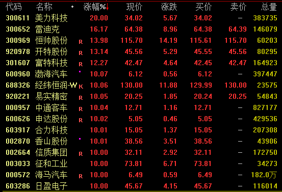 15日,A股早盘震荡回落,午后全线拉升,沪指重返3900点上方,创业板指收复3000点大关;港股亦走高,恒生指数涨近2%。 具体来看,两市股指午后在保险、券商、医药、酿酒等板块带动下强势上扬,沪指涨超1%,创业板指涨超2%。截至收盘,沪指涨1.22%报3912.21点,深证成指涨1.73%报13118.75点,创业板指涨2.36%报3025.87点,上证50、科创50、北证50指数等均涨超1%,沪深北三市合计成交20907亿元,较此前一日减少逾5000亿元。 场内超4300股飘红,市场热点继续切换,医药、消费类股崛起。汽车产业链股拉升,美力科技、香山股份、征和工业等涨停;医药股反弹,向日葵、昂利康等涨停,广生堂大涨超17%;纺织服装、零售、食品饮料等板块均上扬,券商、酿酒板块亦走高;充电桩概念崛起,和顺电气、新洁能、中恒电气等涨停。值得注意的是,三花智控尾盘突然拉升涨停,其港股亦大涨超10%。 港股方面,中国人寿涨超6%,华虹半导体、京东健康、商汤等涨超5%,小鹏汽车、阿里巴巴等涨约4%。 汽车产业链股拉升 汽车产业链股盘中发力走高,截至收盘,美力科技20%涨停,雷迪克涨超16%,恒帅股份、开特股份涨超13%,渤海汽车、中通客车、香山股份、海马汽车等均涨停。 中国汽车工业协会14日发布数据显示,2025年前9个月,我国新能源汽车产销量双双突破千万辆,同比增幅均超过30%。中国汽车工业协会副秘书长陈士华表示,近期,汽车以旧换新政策继续显效,地方车展火热进行,企业新品密集上市,汽车市场整体延续良好态势。 方正证券指出,销售旺季及年末抢装效应下,销量环比增长趋势延续,10月虽然部分地方补贴节奏陆续放缓,然而新能源购置税影响下,抢装效应仍然存在,预计销量环比仍将持续上行,有望带动板块持续修复。出口端,近期关税相关扰动再起,或对出口产生短期影响,长期依旧看好国产厂商全球维度下的高竞争力以及多市场拓展的能力。车市进入“金九银十”消费旺季,出口层面增长有望延续,板块具备长期稳健配置价值,建议优先关注板块龙头及对美低敞口的标的。 医药板块反弹 近期疲弱的医药板块盘中拉升,创新药概念等表现亮眼。截至收盘,向日葵20%涨停,广生堂涨超17%,舒泰神涨超12%,昂利康、联环药业、亚太药业亦涨停。 机构表示,国庆假期后市场延续节前行情,整体市场仍以科技行情为主,医药板块阶段资金有所流出,表现相对震荡。短期调整一方面源自于前期部分获利资金的阶段性兑现且阶段催化有限,另一方面,中美贸易摩擦升温带动避险情绪,部分资金从风险偏好性强、海外关联度高的细分板块暂时撤离。 东海证券指出,2025年欧洲肿瘤内科学会(ESMO)将于10月17日至21日在德国柏林召开,最新研究摘要将在演讲当日公布,期待国产创新药新数据的读出及新的BD交易机会。我国创新药企业正快速走向世界舞台,在很多细分领域具备全球竞争力,中长期来看,创新药仍是未来的投资主线。从上市公司业绩情况来看,创新药板块仍保持收入高增长并不断减亏扭亏,预计三季度创新药板块将延续收入高增趋势。同时,建议关注业绩边际持续向好的CXO、上游科学试剂、器械设备等细分板块及个股的投资机会。 三花智控爆发 市值超千亿元的三花智控(002050)尾盘强势拉升封涨停,截至收盘,该股报44.18元/股,全日成交近120亿元;其港股亦大幅走高,收盘涨约13%。 据了解,三花智控股价突然爆发,或是受到一则消息影响。 今日(10月15日)市场有传闻称,特斯拉已向中国供应商三花智控下达了价值6.85亿美元的Optimus线性执行器订单。对此三花智控证券部工作人员表示,已经注意到该传闻,公司内部正在紧急核实,若消息不实将通过官方渠道辟谣。当前与特斯拉合作进展顺利,但具体细节因保密协议暂无法披露。此前亦有消息传出,称特斯拉已向三花智控等核心供应商下达2026年订单,但未获证实,公司方面也未进行回应。 公司近日在接受机构投资者调研时表示,公司坚定看好机器人作为AI最大应用场景的发展前景,聚焦机电执行器,并已成立专门的机器人事业部,积极配合客户产品研发、试制、迭代并最终实现量产落地。机器人项目整体推进非常顺利。 校对:杨立林 |