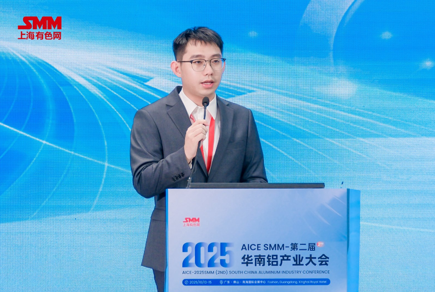 10月15日,由上海有色网信息科技股份有限公司、山东爱思信息科技有限公司主办的2025AICE SMM (第二届)华南铝产业大会在广东·佛山·南海国际会展中心(毅贤路10号)圆满落幕! 此次大会设立了一个主论坛及四个分论坛,分别为2025 AICE 华南铝产业主会议、氧化铝&电解铝原料论坛、铸造铝合金产业发展论坛以及铝行业网红分享论坛+供需交流论坛以及铝熔铸及挤压技术论坛,嘉宾们从宏观经济分析到铝产业链发展现状,围绕矿产政策变革及氧化铝新增产能对供需平衡和价格影响、以“科学性,应用性,权威性”重构中国铝产业全球绿色低碳竞争新格局、人民币国际化背景下,铝跨市套利的新机遇与汇率风险管控、低碳转型浪潮下,铸造铝合金行业发展与价格趋势、新旧模式交替背景下,铸造铝合金市场分析及期货应用,浅谈铸造铝合金标准合约上市对市场带来的变化,铝镁合金在整车市场应用趋势对比,反内卷环境下国内宏观经济与政策形势展望,铜铝替代浪潮中:铝市场的新增空间究竟几何?聚焦大湾区-中国铝产业未来发展的探讨等话题展开激烈的头脑风暴! SMM对本次会议全程开展了视频、图片以及文字报道,点击下图可查看视频回放! 》点击查看现场视频直播 》点击查看会议专题报道 》点击查看现场图片直播 2025 AICE 华南铝产业主会议 开幕致辞 致辞嘉宾: SMM 华南办总经理 谢修江 》点击查看现场视频致辞详情 中信期货有限公司 副总经理 王金兵 》点击查看现场视频致辞详情 SMM华南A00铝锭采标单位 》点击查看详细企业名单 SMM华南铝棒采标单位 》点击查看详细企业名单 SMM华南ADC12采标单位 》点击查看详细企业名单 SMM华南压铸铝采标单位 》点击查看详细企业名单 10月13日 氧化铝&电解铝原料论坛 发言主题:剖析矿产政策变革及氧化铝新增产能对供需平衡和价格影响 发言嘉宾:SMM 铝行业高级分析师 郭茗心 SMM高级分析师郭茗心围绕“剖析矿产政策变革及氧化铝新增产能对供需平衡和价格影响”的话题栈开分享。她表示,2025年中国颁布的矿产政策出要加快推动国内铝土矿资源增储上产,鼓励使用境外资源。 几内亚铝土矿政策导致铝土矿成本预期上移,长期看中国用矿成本预计上涨。而展望全球氧化铝供应,SMM预计,2025年及远期,氧化铝新增产能或超过4500万吨左右,而电解铝新增产能不足千万吨,需求增长不及供应增速。中长期来看,氧化铝供应预计相对宽松,对氧化铝价格造成一定的压力。 中国矿产政策:增储上产,鼓励使用境外资源 2025年,政策面发布了《铝产业高质量发展实施方案(2025—2027 年)》,该方案提出要加快推动国内铝土矿资源增储上产,推进新一轮找矿突破战略行动,鼓励开展低品位铝土矿、高硫铝土矿开发利用技术攻关方面,明确了到2027年力争国内铝土矿资源量增长3%-5%;《有色金属行业稳增长工作方案(2025—2026年)》提及,加强资源勘查与利用,支持有色金属企业与国外矿企、运输企业签订长期采购协议。 》SMM:剖析矿产政策变革及氧化铝新增产能对供需平衡和价格影响 发言主题:以“科学性,应用性,权威性”重构中国铝产业全球绿色低碳竞争新格局 发言嘉宾:中国有色金属工业协会绿色产品评价中心 特聘专家 陆韬 在碳数据量化领域,真正意义的国际互认既不是简单的标签数字认可,也不是一次单一的技术审核认可,更不是主观的评估评价而必须是一套建立在科学性、应用性与权威性基础上的系统性工程。这是一项长期的需要持续交流和投入,迭代完善的过程,只有通过不断深化研究、加强国际合作与互信,才能推动碳数据量化体系在全球范围内实现真正的互认与应用拓展。 在全球碳足迹规则重构的关键时刻,我们呼吁更多中国铝产业链企业、科研机构与国际同行以本次大会为起点,共同构建集“科学核算、应用落地、国际互认”于一体的碳足迹管理体系中国方案。让每一次数据互通成为技术合作的桥梁,每一项标准创新化为绿色贸易的基石,以一中国特色之路’的实践智慧,为全球碳中和注入可持续动能! 》以“科学性 应用性 权威性”重构中国铝产业全球绿色低碳竞争新格局 发言主题:人民币国际化背景下,铝跨市套利的新机遇与汇率风险管控 发言嘉宾:广州金控期货有限公司 研究员 黎俊 境内电解铝供应:产能接近上限 2017年供给侧改革,规定我国电解铝产能上限为4500万吨。 2025年9月我国电解铝运行产能为4444.9万吨。 供应:铝水占比高 9月份我国电解铝产量3361.48万吨,同比增长1.14%。 9月份,铝水占比76.3%。 》金控期货:人民币国际化背景下铝跨市套利的新机遇与汇率风险管控 发言主题:市场驱动下的铝加工技术创新与价值创新 发言嘉宾:原中铝集团/西南铝 首席工程师/副总工程师 林林 新时代铝加工发展趋势 市场规模与增长 2017年增长减速;2005年以后,新建工厂带来产能迅猛扩张,但是产品仍以跟踪仿制为主。我国铝加工产能已占全球60%,物美价廉?创新产品、技术、领域! 铝材消费量 中国铝材消费量持续增长,2024年消费总量约4470万吨,占全球55%以上,其中建筑业占比25%,交通运输业占比30%,是主要驱动力。 铝加工企业数量 随着铝材需求上升,中国铝加工企业数量稳步增加,截至2025年3月相关企业注册量达75.1万家,主要集中在山东、江苏、广东,市场竞争激烈。 》专家谈:市场驱动下的铝加工技术创新与价值创新 10月13日 铸造铝合金产