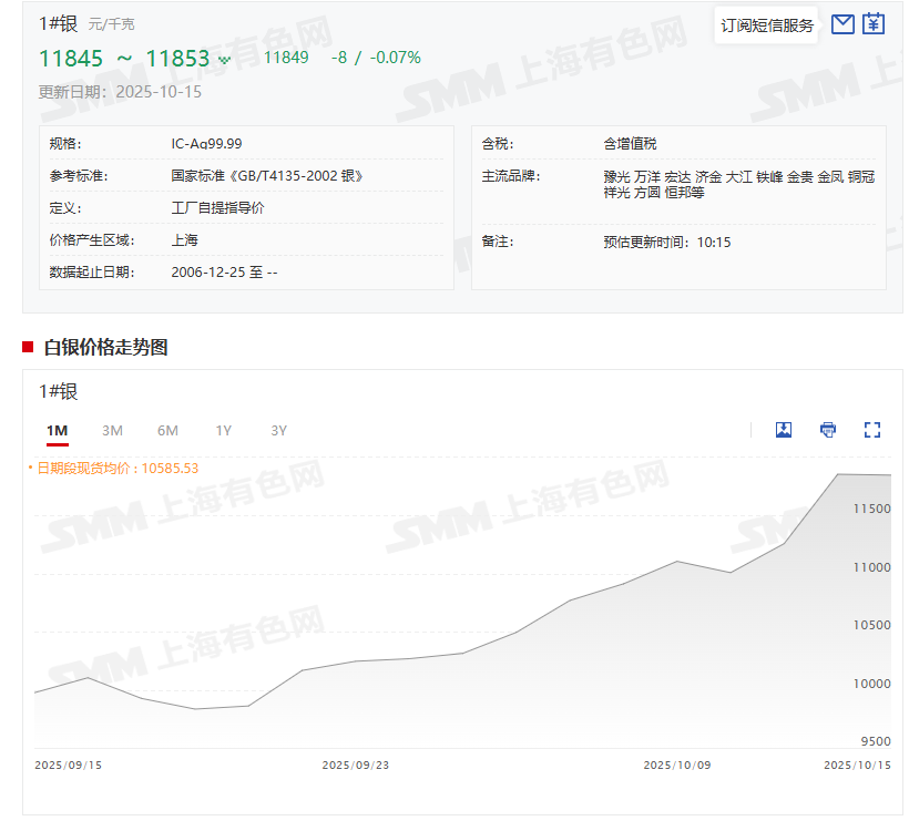 SMM10月15日讯: 美联储主席鲍威尔周二发表讲话时暗示美联储可能在未来几个月结束缩减资产负债表,且保留了10月降息的可能性,市场预计本月美联储会议将降息25个基点,美联储进一步降息预期为贵金属上涨增添动力。因贸易紧张局势加剧全球不确定性提升市场避险需求;美国政府持续 “停摆”,美国关键经济数据延迟发布,令市场的防范风险意识升温;日本和法国政局的动荡叠加地缘冲突持续等均推动了贵金属避险需求的上升。中国、印度等新兴市场央行连续多月增持黄金,为金价提供了长期支撑。此外,部分投机资金的涌入也推动了贵金属迭创新高!截至10月15日15:25分左右,COMEX黄金涨1.29%,盘中刷新历史新高至4218.4美元/盎司;沪金主连涨2.09%,盘中刷新历史新高至960.42元/克;COMEX白银涨1.76%;沪银主连涨2.3%;白银T+D涨2.27%。 贵金属股市方面:贵金属股票10月15日出现了上涨,截至10月15日收盘,贵金属板块涨1.85%,个股方面:招金黄金涨停,赤峰黄金、晓程科技以及湖南黄金等涨幅居前。 》点击查看SMM期货数据看板 持货商报价差异扩大 市场成交尚可 》点击查看贵金属现货价格 》点击查看SMM金属现货历史价格走势 白银现货继续维持在高位,据SMM报价显示,10月15日,SMM1#白银上午出厂参考均价为11849元/千克,均价较前一交易日下跌8元/千克,跌幅为0.07%。据SMM了解,早盘上海地区大厂银锭对TD升水15-20元/千克报价刚需成交,或对沪期银2512合约贴水17-20元/千克报价成交,国标银锭对TD升水10元/千克报价成交。市场流通货源仍相对偏紧,持货商报价差异扩大,下游终端刚需接货,市场成交尚可。 各方声音 在COMEX黄金升破4200美元、COMEX白银徘徊在51美元/盎司之际,多家大机构对贵金属的后市的看法如下: 英国央行行长贝利表示,生产力可能比我们想象的要高;更高的不确定性与市场碎片化风险推动金价上涨。 法兴银行预计金价将于2026年底前达到每盎司5000美元。 美国银行上调明年金、银价格预测,目标金价至5000美元/盎司,目标银价至65美元/盎司。 国信证券发布研报指出,黄金第三浪的机会可能触发在海外人工智能科技浪潮筑顶带来的资金再分流,目前看并无征兆。2003-2004年、2006-2007年美国科技股和黄金同涨,再到科技浪潮中止符、黄金超涨都是相同逻辑,避险情绪从地缘端扩散到资金流,目前尚未触发第三阶段信号。伴随美国三大股指下跌,避险情绪驱动黄金价格继续上涨,仍看好黄金中长期价格走势,居民资产配置中黄金的比例在2-10%间较适宜,机构配置盘比例则可适当提升。 Wheaton Precious Metals Corp首席执行官Randy Smallwood表示:“我相信明年金价将突破5000美元……按照这样的走势,金价很容易在2030年底前达到每盎司1万美元。这对我来说一点也不意外。长期以来,白银市场一直处于供不应求的状态。”库存白银一直在弥补这一缺口,但如今这些库存“几乎枯竭”。Wheaton向矿商提供预付款融资,以换取未来生产的折扣。受地缘政治风险加剧和实物供应紧张推动,投资者纷纷涌向贵金属,金价飙升,Wheaton也从中受益。(财联社) 中信证券研报指出,8月底以来黄金价格迅速上涨,除了此前关注的长期因素,近期美联储降息预期不断升温、美国政府关门催化避险交易、委内瑞拉方向的地缘政治扰动可能驱动短期快速上行。我们认为尽管这些短期因素终会消退,但基本面的长期利多难以改变,未来展望仍然乐观。更新的模型显示中性假设下明年Q1金价有望超过4500美元/盎司。 高盛日前称,银价中期内最可能的走势是进一步上涨。此外,高盛将2026年12月金价预估上调至4900美元/盎司,先前预估为4300美元。预计2025年和2026年各国央行的黄金净购买量将分别平均为80吨和70吨,因为新兴市场央行可能会继续通过增持黄金来实现外汇储备的结构性多元化。(财联社) 中信建投证券研报认为,金银等贵金属和加密货币在国庆中秋假期迎来大涨。国际金价大涨的背后主要是由美国政府停摆引发的短期波动、日本政治更迭带来的短期不确定性、美联储持续降息预期和全球央行持续购金共同推动的。美国政府关门扰动、未来降息和衰退的预期使得全球投资者对美元信用和美国主权债务的担忧进一步上升,这推动了金银等贵金属和比特币价格进一步走高。与此同时,供给短缺和算力革命逻辑下,铜价近期也明显走强。建议关注金银铜等有色板块投资机遇。 推荐阅读: 》银价延续偏强震荡 持货商报价差异扩大【SMM日评】 》伦敦白银市场出现流动性危机 交易员担忧特朗普政府酝酿另一个大招 |