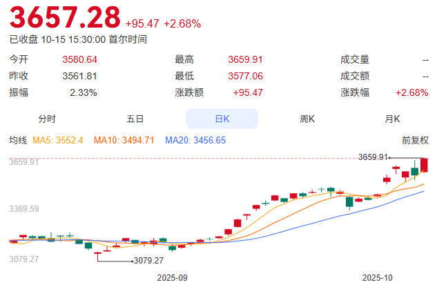 韩国股市近日表现引人瞩目。 当地时间10月15日,KOSPI指数报收3657.28点,较前一交易日上升95.47点,涨幅2.68%,续创历史新高。 今年以来,韩国股市已经上涨52%,在亚洲市场中表现突出。 科技板块成为本轮上涨的领头羊。摩根士丹利分析显示,AI应用正从高端芯片扩散至通用存储芯片和AI芯片基板等周边技术领域,三星电子和SK海力士等龙头企业将成为主要受益者。 摩根士丹利已将KOSPI目标价从3250点大幅上调至3800点,牛市情形下甚至可能达到4200点。 摩根士丹利在最新研报中称,尽管贸易紧张局势加剧可能带来短期波动,但结构性增长驱动因素将限制下行风险并推动韩股进一步上涨。 该行韩国策略团队主管Joon Seok等分析师认为,AI发展、国防、电力基础设施和韩流文化四大超级周期正与政府改革议程形成共振,为韩国股市提供下行保护和上行动力。 今年以来,韩国股市的强劲表现也源于李在明政府上任后推行的一系列改革政策。 李在明在竞选中提出的“KOSPI 5000点”目标被市场视为革命性宣言,其上任后推出的公司治理改革、刺激消费和投资AI三大政策迅速提振了市场信心。 公司治理改革政策尤其引人注目,包括修订商法强制注销库存股、对高股息企业减税、强化董事受托责任,直指财阀“低分红、低回购”顽疾。高盛测算,若改革落地,KOSPI市盈率有望从9.3倍修复至12倍。 摩根士丹利预计,下一步改革措施将涉及库存股规则和关键税收改革。股息税改革方面,基本情况假设最高税率将设定在30%以下,低于政府提议的35%,并在2025年确认。库存股规则改革时机虽不确定,但更多是何时而非是否的问题。 此外,投资者还预计,韩国政府控制房价的新措施可能会加速资本流入金融市场。 韩国政府于10月15日出台了一系列楼市稳定措施,将首尔剩余的21个地区全部指定为投机地区,出台更严格的贷款规定,以遏制首都地区快速上涨的房价。这是韩国政府继6月27日和9月7日之后,时隔一个多月再次推出旨在抑制楼市需求的措施。 截至9月底,首尔的公寓价格连续第35周上涨,尽管韩国政府此前已采取措施抑制需求,但价格涨幅仍在加快。房价持续上涨给韩国央行带来了挑战,由于房地产相关的金融稳定风险,央行在最近两次会议上均维持利率不变。 韩国土地、基础设施和交通部部长10月15日在简报会上表示,近期房地产市场的不稳定状况正受到全球降息预期以及持续存在的供需失衡的影响,这引发了对大量资本流入房地产领域的担忧。“为此,我们将采取预防性措施,尽早遏制房地产市场的不稳定,并确保资金流向更具生产力的经济领域”。 分析指出,这些楼市调控政策的出台,预计将改变韩国资本的市场流向。严格的房贷限制会降低房地产市场的吸引力,促使部分寻求更高回报的资金转入金融市场,特别是股市。 |