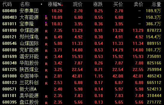 16日,A股午后回落走低,尾盘再度企稳,沪指、创业板指双双翻红;但全A成交额再度萎缩,全日成交不足2万亿元;恒生指数尾盘亦止跌回升。 具体来看,两市主要股指早盘一度拉升,午后震荡回落,尾盘再度上扬。截至收盘,沪指涨0.1%报3916.23点,深证成指跌0.25%报13086.41点,创业板指涨0.38%报3037.44点,上证50指数涨0.59%,科创50指数跌近1%,沪深北三市合计成交19489亿元,较此前一日减少逾1400亿元。 场内超4100股飘绿,钢铁、有色、燃气、化工等板块集体下挫;煤炭板块逆市拉升,大有能源、宝泰隆近5日斩获4板;保险板块强势,中国人寿大涨超5%;银行板块亦上扬,农业银行、建设银行、工商银行等涨逾2%;存储芯片概念活跃,云汉芯城20%涨停,香农芯创、佰维存储盘中均创出新高;创新药概念走高,三生国健、多瑞医药涨超10%。值得注意的是,今日复牌的天普股份牢牢封死跌停;此外,近日强势的武进不锈尾盘跌停。 港股方面,思考乐教育大涨超26%,东方甄选涨超10%,泡泡玛特、老铺黄金涨超5%;巨子生物大跌超15%,蔚来跌约9%。 金融板块强势 保险、银行板块今日联袂拉升,截至收盘,中国人寿涨超5%,中国人保涨逾4%,农业银行涨约3%,建设银行、工商银行、中国银行等涨约2%。 机构表示,基于政策红利与资产端改善的双重逻辑,当前保险板块配置价值凸显。此外,银行股作为保险资金重仓的核心板块,其表现与保险股投资价值存在显著联动效应。近期银行股经历前期回调后,估值有望修复,进一步加强保险股资产收益预期。 中信建投证券指出,目前银行业实际经营和预期底部进一步夯实的情况下,以底线思维、高置信度、高胜率为核心诉求的配置型需求,安全边际进一步提升。经济预期未见向上拐点前,板块内部难以全面切换至顺周期品种。继续看好高股息率策略,险资等中长期资金仍有长期配置需求,板块内部或根据短期基本面及股息率比价频繁轮动。 煤炭板块崛起 煤炭板块今日大幅走高,大有能源、宝泰隆涨停,近5个交易日双双斩获4个涨停板,安泰集团亦涨停,中煤能源涨超7%。 据国家统计局数据,2025年1—8月全国原煤产量累计31.65亿吨,同比增加2.8%。机构认为,受产能核查文件及安监趋严影响,预计四季度产量不会大规模释放。数据显示,2025年三季度动力煤、焦煤价格环比均回升。 国信证券指出,2024年中至今,由于煤价下跌导致煤企利润不佳,但是2025年下半年煤价反弹后,煤企利润有望改善且四季度煤价具备向上弹性,叠加本轮市场转好后,煤炭板块表现明显弱于其他板块,且底部明确,看好板块四季度反弹。动力煤方面,查超产继续实质性推进叠加安监进一步趋严,国庆节后煤价迅速止跌并反弹,反映供应收紧预期持续增强,抬高煤价底部,旺季需求释放或打开煤价上行空间。 存储芯片概念活跃 存储芯片概念今日再度活跃,截至收盘,云汉芯城20%涨停,香农芯创涨近17%创出新高,开普云涨近12%,德明利等亦涨停;佰维存储涨近9%,盘中亦创出新高。 行业方面,受AI、数据中心及终端存储需求拉动,存储市场近期持续升温,主要厂商陆续宣布涨价。据悉,闪迪再度将NAND闪存报价上调约10%,覆盖消费级与企业级产品,延续了自4月以来的上涨态势。9月下旬,三星电子也向主要客户发出第四季度调价通知,计划将部分DRAM价格上调15%—30%,NAND闪存价格上调5%—10%。美光科技在9月一度暂停所有DDR4、DDR5、LPDDR4、LPDDR5等存储产品报价,恢复后产品价格普遍上涨约20%。 东海证券表示,本轮价格上涨反映随着AI技术快速发展,AI服务器、数据中心等关键领域对存储芯片需求大增,建议持续关注后续存储芯片价格走势。 校对:王锦程 |