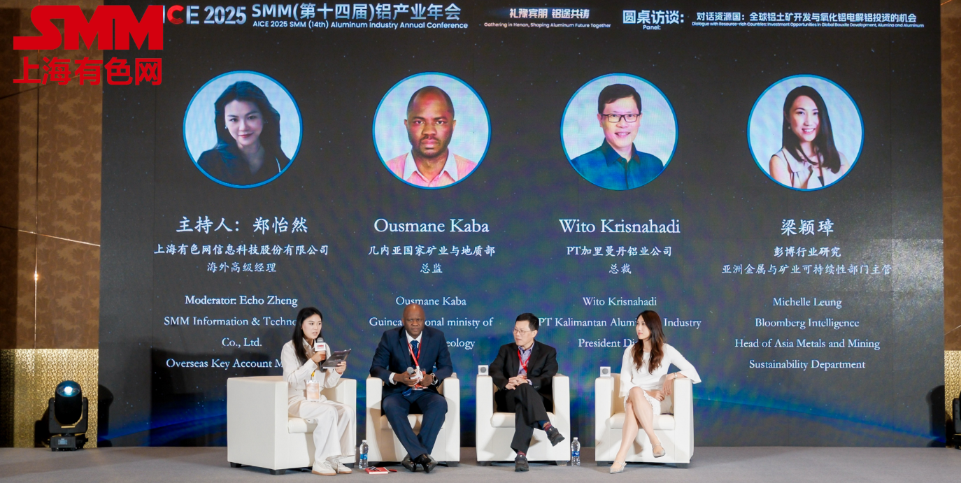 (应嘉宾要求,此发言不对外公开) 圆桌访谈: 对话资源国:全球铝土矿开发与氧化铝电解铝投资的机会 主持人:SMM 海外高级经理 郑怡然 访谈嘉宾: 几内亚国家矿业与地质部 总监 OusmaneKaba 印尼加里曼丹铝业 总裁 Wito Krisnahadi 彭博行业研究亚洲金属与矿业 可持续性部门主管 梁颖璋