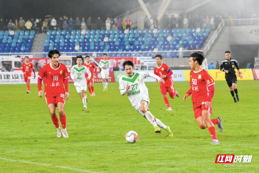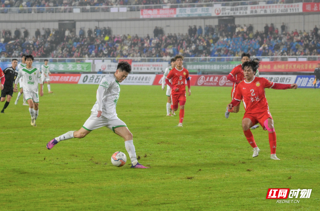 红网时刻新闻10月20日郴州讯(记者 唐哲宁 通讯员 陈哲君)10月19日,“湘超”第六轮焦点战在岳阳奥体中心打响。郴州队客场1:1战平东道主岳阳队,这场牵挂着万千郴州球迷的比赛,最终双方握手言和。 比赛开场即陷入胶着。第12分钟,郴州队“核武7”王博禁区内左脚劲射破门,率先打破僵局。上半场郴州队以1:0比分暂时领先岳阳队。下半场,岳阳队为了扳平比分,继续保持高强度进攻。经过多次进攻后,岳阳队终于抓住机会,第87分钟,岳阳队定位球开出,8号余骞禁区内接球后,一脚抽射破门,1:1扳平比分。补时阶段,双方互有攻守,但都是无功而返,最终双方1:1战平。 比赛当天,尽管遭遇冷雨,千余名郴州球迷仍随队远征,用呐喊点燃客场。客队看台上,“郴州加油”的声浪穿透雨幕,与球员的拼搏形成呼应。 |