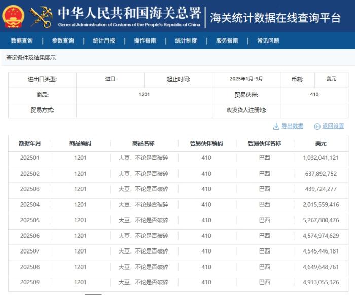 海关总署数据显示,今年9月,中国未从美国进口大豆。这是中国对美国大豆月进口量自2018年11月以来首次降至零。 在关税背景下,今年美国豆农的大豆丰收季没有了“中国订单”。而与此同时,作为世界上最大的大豆进口国,中国正加大对南美国家大豆的采购取代美豆。 据路透社等报道,今年1-9月,中国共从巴西共进口6370万吨大豆,同比增长2.4%,从阿根廷进口290万吨大豆,同比增长31.8%。中国对南美国家大豆进口量创下新高。 ![]() 中国2025年1-9月从巴西进口大豆(不论是否破碎)数据。来源:海关总署 路透社指,如果美国和中国接下来的贸易谈判没有突破,随着中国继续从南美采购大豆,美国农民可能面临数十亿美元的损失。 彭博社报道则提到,因失去中国买家,美国农民的不满情绪正在加剧,他们面临着大豆价格下跌的压力,许多人急切期待美国政府援助。不过,因为政府“停摆”,这些援助目前处于搁置状态。 (文章来源:中国新闻网) |