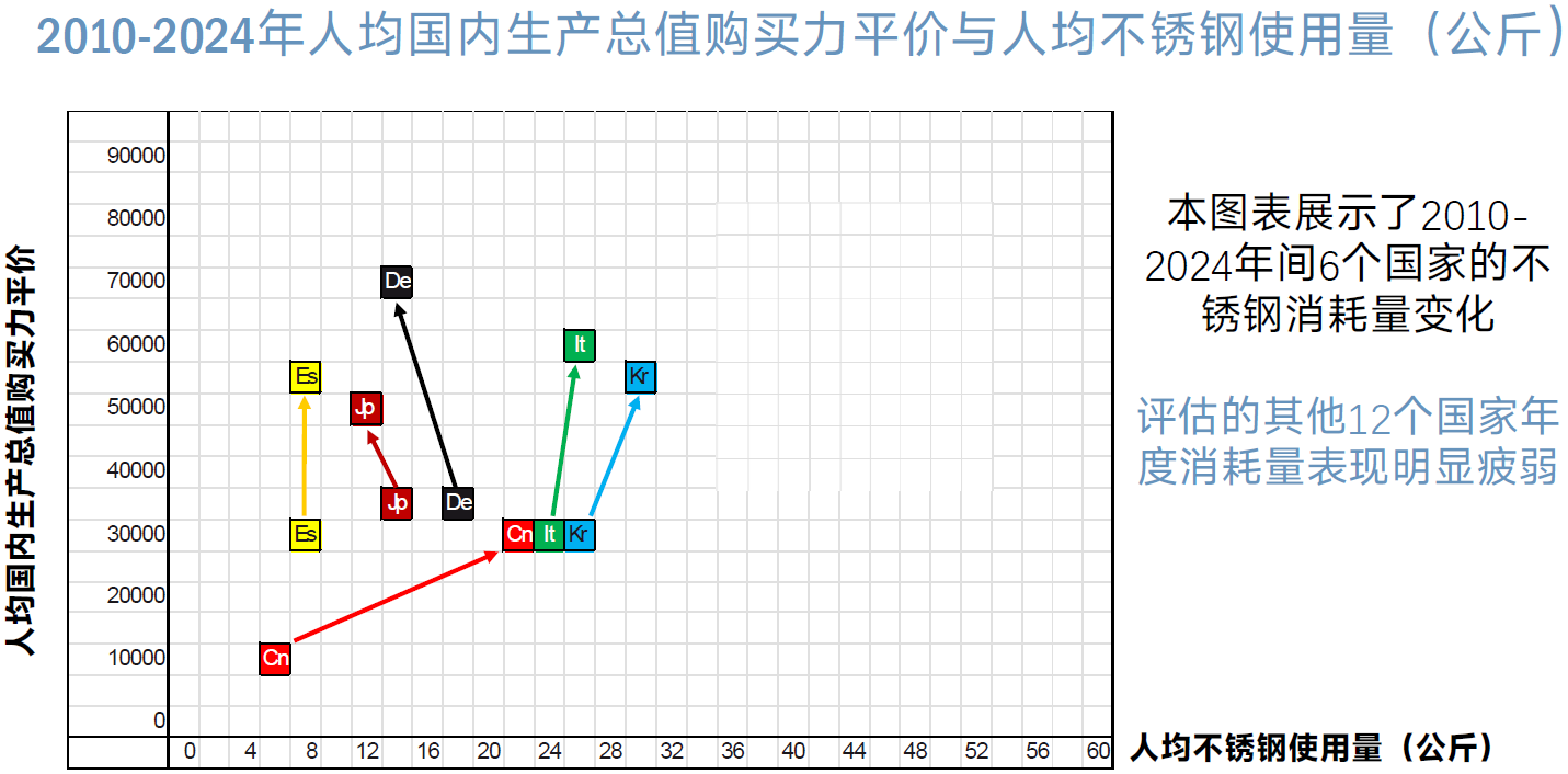10月21日,在由上海有色网信息科技股份有限公司(SMM)主办的2025第十届亚太镍铬锰不锈钢及新能源大会上,世界不锈钢协会秘书长Tim Collins在会议现场分享了“全球不锈钢市场展望”。 背景:过去10年全球不锈钢熔炼车间产量 复合年均需求量增长率 部分关键材料 所列数据均呈现出持续增长的需求。 不锈钢是金属及合金组别中性能最佳的材料。 塑料消费继续保持非常强劲的增长轨迹。 不锈钢产量;品位组分布 奥氏体,特别是300系列品位仍主导总产量。 当前环境 当前不锈钢需求环境充满挑战....但我们已习惯中期内的周期性需求量变化。 地缘政治动荡、经济放缓、行业相关需求疲软、市场保护措施竞争材料生产商采取的强势立场… 但仍然存在一些令人鼓舞的机会。 我们了解自己的竞争对手吗? ►虽然不锈钢始终存在新的增长市场 受大趋势、新技术和大型发展的推动,例如小型模块化反应堆 ►其中部分市场机遇可能发展缓慢 不锈钢具备在现有市场中替代其他材料的潜力 ►例如:塑料显然并非竞争材料类别 但它们可能在出人意料的应用领域被替代 ►不锈钢是食品饮料行业的典范材料 微塑料在加热/轻微摩擦时会渗入食品饮料 ►微塑料含超过4,000种毒素……与痴呆症、心血管疾病等相关。(数据来源;人类体内微纳塑料毒性研究,法泽·贾赫迪等人,阿瓦士贾恩迪沙普尔医科大学,2025年) 食品饮料行业包括家庭制备/储存、专业厨房和商业生产。 其对不锈钢的机遇、厨具与炊具对比等内容进行了介绍。 建筑与基建 全球市场庞大,每年钢铁产品产量稳定在约9亿吨,不锈钢仅占总消费量的不足1%。 尽管部分示范项目已采用不锈钢…… ……许多结构仍会快速劣化并需要持续检修。 成本高昂且碳排放量大。 在结构中选择性使用不锈钢具有变革性意义。 初始成本持平并可延长共材使用寿命。 其对年度不锈钢消费量——国家视角进行了阐述。 年度不锈钢消耗量 世界不锈钢协会目前统计了18个国家的不锈钢消耗量(占世界人口的60%),这些国家的人均消耗量(公斤)差异较大,存在一些显著差异。18个国家中有7个国家年消耗量表现突出,18个国家中有12个在人均消耗量方面落后,包括一些令人意外的国家,例如法国、英国和美国。 其对18个国家2024年人均GDP(购买力平价)与人均不锈钢使用量进行了介绍,并表示:实现目标人均不锈钢使用量将创造另外600万吨的新需求。 需要做什么? 了解几个关键国家的材料使用情况,不锈钢的优势尚未被理解,确定关键使用领域中目前较弱的材料选择,研究这些选择并推动变革,较弱材料的营销具有高度创造性。例如:人类健康与安全、结构寿命、避免检修。 结论 不锈钢是一类常被误解的耐腐蚀合金,它们是某些应用领域的首选材料:家用电器、餐具、商用餐饮设备、医疗保健,但其他行业认为其价格昂贵且加工困难,短期主义与低前期成本因素仍主导材料选择,检修被视为企业的盈利活动,我们必须改变这些观点与误解。 不锈钢宣传、不锈钢的用途与使用方法、不可否认的健康益处、人类安全益处、可持续特性与可回收性等以上问题均需加以解决以提升消耗量。 》点击查看2025 第十届亚太镍铬锰不锈钢及新能源大会专题报道 |