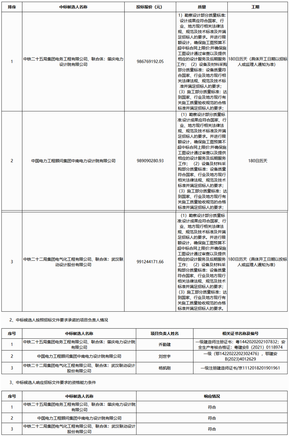 10月21日,晋中市太谷区聚霆能源科技有限公司发布晋中市太谷区150MW独立混合储能项目EPC总承包中标候选人公示。中铁二十五局集团电务工程有限公司、肇庆电力设计院有限公司联合体以986769192.05元成为该项目第一中标候选人;中国电力工程顾问集团中南电力设计院有限公司报价989090280.93元,排名第二;中铁二十二局集团电气化工程有限公司、武汉联动设计股份有限公司联合体报价991244171.66元,排名第三。 该项目为是飞轮储能+电化学混合储能项目,其中含锂电池储能70MW/140MWh,飞轮储能系统80MW/2.8MWh,总规模达150MW/142.8MWh,同时还将新建一座220kV升压站,配套建设相应基础设施等,总投资概算109800万元。 晋中市太谷区150MW独立混合储能项目EPC总承包中标候选人公示 (招标编号:M1100000048004956001 ) 公示开始时间:2025年10月21日17时0分 公示结束时间:2025年10月24日17时0分 本晋中市太谷区150MW独立混合储能项目EPC总承包 (招标项目编号:M1100000048004956001 ),经评标委员会评审,确定001第一标段的中标候选人,现公示如下: 一、评标情况 标段(包)001第一标段: 1、中标候选人基本情况