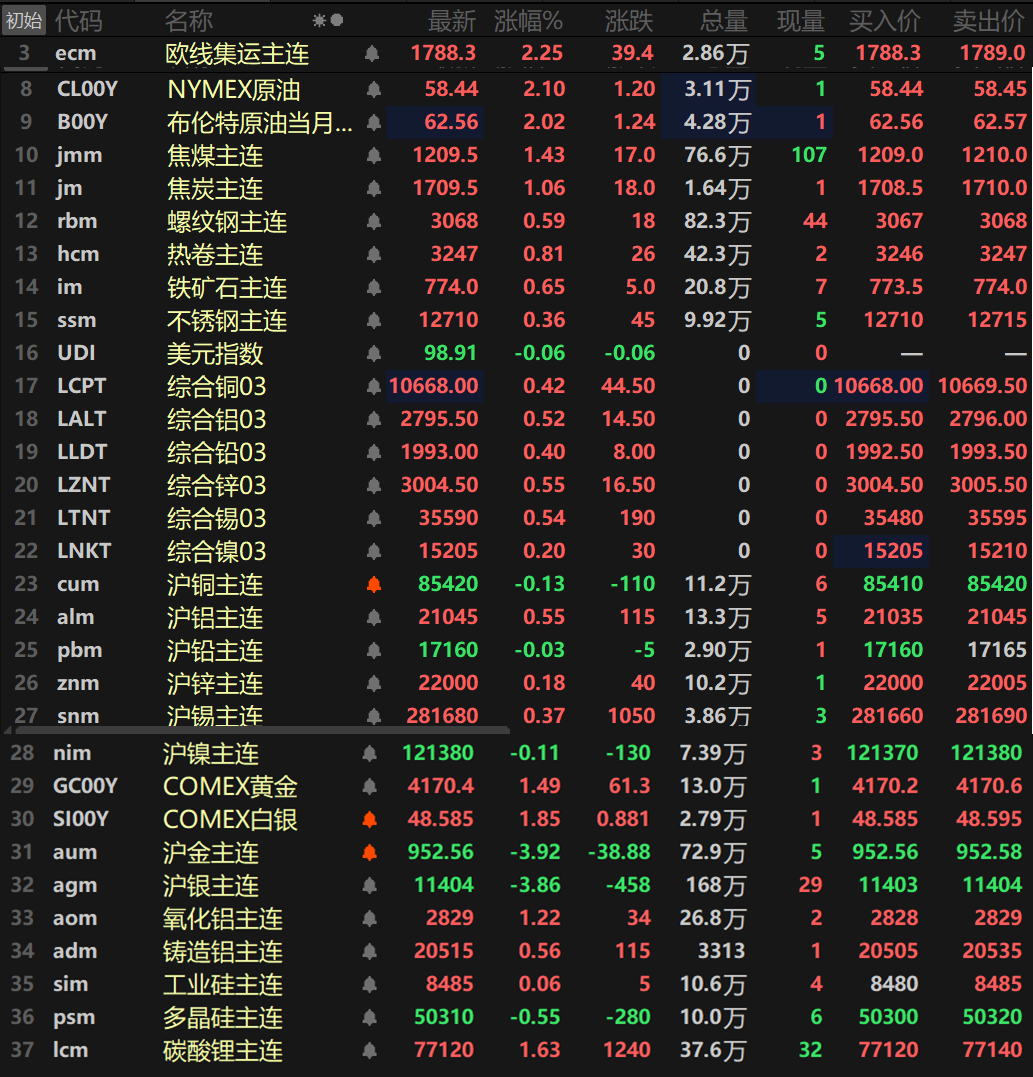 SMM 10月22日讯: 金属市场: 截至日间收盘,内盘基本金属涨跌互现,沪铝涨0.55%,沪锡涨0.37%,沪铜以0.13%的跌幅领跌,其余金属涨跌幅波动均不大。氧化铝主连涨1.22%,铸造铝主连涨0.56%。 此外,碳酸锂涨1.63%,工业硅涨0.06%,多晶硅跌0.55%。欧线集运主连涨2.25%报1788.3。 黑色系方面集体上涨,热卷涨0.81%,铁矿涨0.65%,双焦方面,焦煤涨1.43%,焦炭涨1.06%。 外盘方面,截至15:03分,外盘基本金属普涨,伦锌涨0.55%,伦锡涨0.54%,伦铝涨0.52%,其余金属涨跌幅波动不大。 贵金属方面,截至15:03分,COMEX黄金涨1.49%,COMEX白银涨1.85%。国内方面,沪金跌3.92%,沪银跌3.86%。 截至今日15:03分行情 》点击查看SMM行情看板 宏观面 国内方面: 【工信部部长李乐成:要深入研究新型工业化的动力机制 充分激发发展动力】工业和信息化部部长李乐成10月22日在《新型工业化》发表文章《加强党的创新理论武装 坚定不移推进新型工业化》。文章表示,发展动力决定发展速度、效能和可持续性。目前我国一些传统动能正在减弱,新动能尚在培育和壮大之中,还不能完全弥补传统动能下降的缺口。2024年,我国战略性新兴产业增加值占GDP比重仅约13.4%,与传统产业80%左右的占比比起来,还只是小块头。动力从哪来?要靠创新、靠改革。从深化改革看,当前制约工业和信息化高质量发展的堵点问题、影响经营主体活力的难点问题、危及产业安全的风险问题还不少。改革的任务很重,同时也意味着潜力还很大。要深入研究新型工业化的动力机制,打通堵点卡点,充分激发发展动力。文章表示,一段时期以来,部分行业非理性竞争问题突出,对企业经营、产业升级、经济增长、国际合作等都带来了不同程度的负面影响,引发社会各方面的广泛关注。产业、企业的培育可谓千辛万苦,而非理性竞争毁掉一个企业、毁掉一个产业,可能就在一夜之间,我们绝不能容忍这种事情发生。抓行业必须抓治理,实现新型工业化、建设现代化产业体系,必须推进行业治理现代化,“十五五”时期应该有大的进展。要锚定实现新型工业化的目标任务,完整准确全面贯彻新发展理念,深入践行以人民为中心的发展思想,标本兼治、系统治理,突出坚持依法治理,突出强化行业自律,突出落实监管责任,突出提升服务能力,着力完善制度机制、优化产业生态,不断提高行业治理现代化水平。行业治理是一项长期性、系统性工程,要加强统筹谋划、综合施策、提升效能。 【港交所集团行政总裁陈翊庭:积极推进人民币柜台纳入港股通交易等工作】2025香港交易所中国机遇论坛10月22日在上海举行。香港交易所集团行政总裁陈翊庭在致辞时表示,相关工作正积极推进中,包括与沪深交易所就大宗交易纳入互联互通机制、人民币柜台纳入港股通交易等。 【央行公开市场今日净投放947亿元】央行今日开展1382亿元7天逆回购操作,操作利率为1.40%,与此前持平。因今日有435亿元7天期逆回购到期,当日实现净投放947亿元。 ►10月22日银行间外汇市场人民币汇率中间价为1美元对人民币7.0954元 美元方面: 截至15:03分,美元指数下跌0.06%报98.91,市场正在期待周五公布的美国9月消费者物价指数报告。该报告因美国政府停摆而被推迟发布。对经济学家进行的一项调查显示,美联储将在下周会议上把关键利率下调25个基点,并在12月再次下调利率。(文华综合) 宏观方面: 今日公布英国9月CPI年率、英国9月核心CPI年率、英国9月零售物价指数年率等数据。此外,还需关注二十届四中全会于10月20日至23日召开;欧洲央行行长拉加德发表讲话;亚太经合组织(APEC)财长会议举行,至10月22日。值得注意的是:非农数据发布具体日期还没有确定,由于美国政府停摆还在持续,截至目前进行的十一次临时支出法案投票均未获通过,目前长期停摆的风险加大。 原油方面: 截至15:03分,两市油价一同上涨逾2%,美油涨2.1%,布油涨2.02%,目前已经连涨两日,受供应风险以及美国计划采购原油以补充战略石油储备的消息提振。 能源市场咨询公司XAnalysts的首席执行官Mukesh Sahdev表示:“尽管因石油供应过剩与需求疲弱导致整体市场情绪偏空,但俄罗斯、委内瑞拉、哥伦比亚及中东等热点地区的供应中断风险仍在,这使油价难以低于每桶60美元水位。” 澳新银行(ANZ)研究分析师周三在一份报告中表示,美国重新填充战略储备石油的计划,也为石油提供了支撑。美国能源部周二表示,正在寻求购买100万桶原油,并将其交付给战略石油储备(SPR),以利用油价相对较低的机会补充库存。 与此同时,美国石油协会(API)公布的数据显示,上周美国原油、汽油和馏分油库存下降。API报告显示,截至10月17日当周,美国原油库存较前一周减少298万桶,汽油库存下降23.6万桶,包括柴油和取暖油的馏分油库存下降97.4万桶。 美国能源信息署(EIA)将于北京时间周三22:30发布官方版库存周度报告,此前的一项扩展调查结果显示,分析师预计上周美国原油库存增加约120万桶,汽油库存减少约80万桶,馏分油库存减少约190万桶。(文华综合) SMM日评 ►【SMM硫酸镍日评】10月22日 镍盐价格持平 ►【镍生铁日评】受到废不锈钢挤占 高镍生铁价格继续下跌 ►【SMM MHP日评】10月22日 MHP价格上行 ►【SMM氢气成本日评】20251021 ►银价高位回落 现货市场成交寡淡【SMM日评】 ►市场交投表现僵持 稀土价格平稳运行【SMM稀土日评】 |