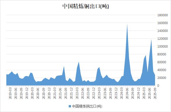 海关总署在线查询数据显示,中国9月精炼铜出口量为26434吨,同比增加81.47%,环比减少