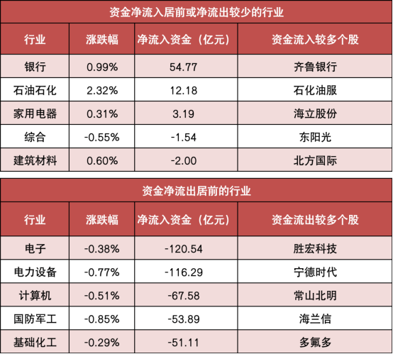 2.沪深300主力资金净流出超120亿元 沪深300今日主力资金净流出123.4亿元,创业板净流出106.34亿元。
