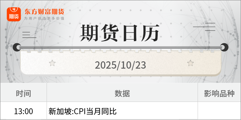 隔夜行情![]() ![]() 每日精选特朗普称中美会在APEC峰会上达成贸易协议 但中美元首未必见面 外交部回应 金价创12年最大单日跌幅 华尔街热议:中途休整还是牛市终结? 特朗普:取消与普京在布达佩斯的会面! 宏观产经澎湃新闻:有记者提问,美国总统特朗普表示,他预计中美会在下周举行的APEC峰会上就贸易问题上达成协议,但他称中美元首届时未必会见面。中方对此有何评论?对此外交部发言人郭嘉昆表示,元首外交对中美关系发挥着不可替代的战略引领作用,中美两国元首保持着密切的交往和沟通。 上游新闻:据路透社10月20日报道,加拿大政府的一份文件显示,加拿大对从美国和中国进口的部分钢铁和铝制品实行了关税减免,以帮助受到贸易战打击的加拿大企业。加拿大总理马克·卡尼正在与美国总统特朗普进行谈判。近期,他的团队还与中方举行了会晤,希望中国对加拿大农产品减免关税。 澎湃新闻:有记者向外交部发言人提问,在与中国商务部部长王文涛会谈之后,欧盟委员会贸易和经济安全委员谢夫乔维奇表示,欧盟和中国官员已同意在布鲁塞尔举行紧急会谈,讨论中国针对稀土的出口管制问题。外交部能否确认这一会谈并提供更多信息?对此郭嘉昆表示,中欧经贸关系的本质是优势互补、互利共赢。希望欧方恪守支持自由贸易、反对贸易保护主义的承诺。 品种资讯黑色系期货 钢材:本周,唐山主流样本钢厂平均铁水不含税成本为2245元/吨,平均钢坯含税成本3003元/吨,周环比下调3元/吨,与10月22日当前普方坯出厂价格2940元/吨相比,钢厂平均亏损63元/吨。 10月东北部分钢厂复产,但冬季生产积极性较低。调研显示,辽宁2家钢厂已复产,1家月底复产,1家11月初复产,2家待定;吉林1家复产,黑龙江2家均已复产。另有3家辽宁钢厂将再次检修。目前东北日均产量减少4.4万吨,检修产线19条。市场库存达46.7万吨,其中辽宁32.1万吨。受冬季需求缩量及低利润影响,钢厂本地投放资源减少,市场压力持续。(我的钢铁网) 铁矿石:9月,全国433家铁矿山企业铁精粉产量为2284.5万吨,环比减少35.6万吨,降幅1.5%;1-9月累计产量20691.8万吨,累计同比减少891.8万吨,降幅4.1%。(我的钢铁网) 焦煤:10月22日临汾市场炼焦煤竞拍价格以涨为主。统计到13家成交结果,累计挂牌21.8万吨全部成交,10家上涨3家下跌,平均涨幅约65元/吨。高硫肥煤A10.5、S4.2、G95成交均价1179元/吨涨199元/吨,高硫主焦A11、S3.7、G92成交均价1089元/吨涨113元/吨,1/3焦煤A10、S0.5、G90成交价1395元/吨跌10元/吨,短期价格震荡偏强运行。(我的钢铁网) 农产品期货 玉米:2025年9月,全国工业饲料产量3036万吨,环比增长3.4%,同比增长5.0%。其中,配合饲料、浓缩饲料、添加剂预混合饲料同比分别增长5.1%、0.3%、6.5%。主要饲料产品出厂价格同比下降,畜禽配合饲料、添加剂预混合饲料出厂价格环比以增为主,浓缩饲料出厂价格环比小幅下降。饲料企业生产的配合饲料中玉米用量占比为33.6%,同比下降2.4个百分点;配合饲料和浓缩饲料中豆粕用量占比为14.3%。(中国饲料工业协会) 棕榈油:据马来西亚棕榈油协会(MPOA)发布的数据,马来西亚10月1日-20日棕榈油产量预估增加10.77%,其中马来半岛增加4.54%,沙巴增加21.99%,沙捞越增加16.69%,婆罗洲增加20.45%。(新华财经) 菜粕:菜粕需求端受季节影响显著,随着气温逐步下降,水产养殖进入淡季,对菜粕的刚性需求下滑,菜粕提货量再度缩减。中国粮油商务网监测数据显示,截至10月17日沿海油厂菜粕提货量为0.97万吨,较前一周缩减0.12万吨,较去年同期大幅下滑5.19万吨,保持在3年同期最低水平附近。(中国粮油商务网) 有色/贵金属期货 多晶硅:本周在产多晶硅企业维持在11家。根据各多晶硅企业四季度的排产计划,西南地区部分产能预计在11月份进入枯水期后逐步检修、减产,预计10月为全年产量高峰,11-12月将逐步回落。四季度国内多晶硅产量预计在38.2万吨左右,同比小幅增加3.0%。(硅业分会) 工业硅:据Mysteel数据显示,中国9月工业硅产量为412031吨,8月产量为380502吨,环比增加8.29%。其中新疆产量为190035吨,环比增加11.68%。四川产量为66164吨,环比增加0.56%。云南产量为55890吨,环比大增2.78%。(我的钢铁网) 沪铜:花旗预计到2026年第二季度铜价平均将达1.2万美元/吨,看涨情境下可能升至1.4万美元/吨。(新华财经) 能化期货 原油:美国能源部长赖特表示,石油价格处于低位,现在是买入的好时机;将逐步充实战略石油储备。(财联社) 美国能源部周二表示,美国计划采购100万桶原油,以充分利用近来跌至低位的油价,补充该国近年来枯竭的战略石油储备库存。美国能源部称,其计划动用特朗普总统标志性税改法案“大而美法案”中拨付的1.71亿美元原油采购资金,分批在12月和1月完成原油采购。(财联社) 甲醇:截至2025年10月22日,中国甲醇港口库存总量在151.22万吨,较上一期数据增加2.08万吨。其中,华东地区累库,库存增加3万吨;华南地区去库,库存减少0.92万吨。本周甲醇港口库存窄幅积累,受天气因素影响,华东地区较长时间封航,再加上其他因素,导致外轮卸货延续不及预期,周期内外轮显性计入22.48万吨。(隆众资讯) 环球视野财联社:美国政府停摆已进入第22天,成为史上第二长停摆事件,两党在即将到期的医疗补贴问题上依然僵持不下。随着特朗普本周晚些时候预计将启程前往亚洲,议员和国会助理们表示,政府停摆很可能会持续至11月,并超过