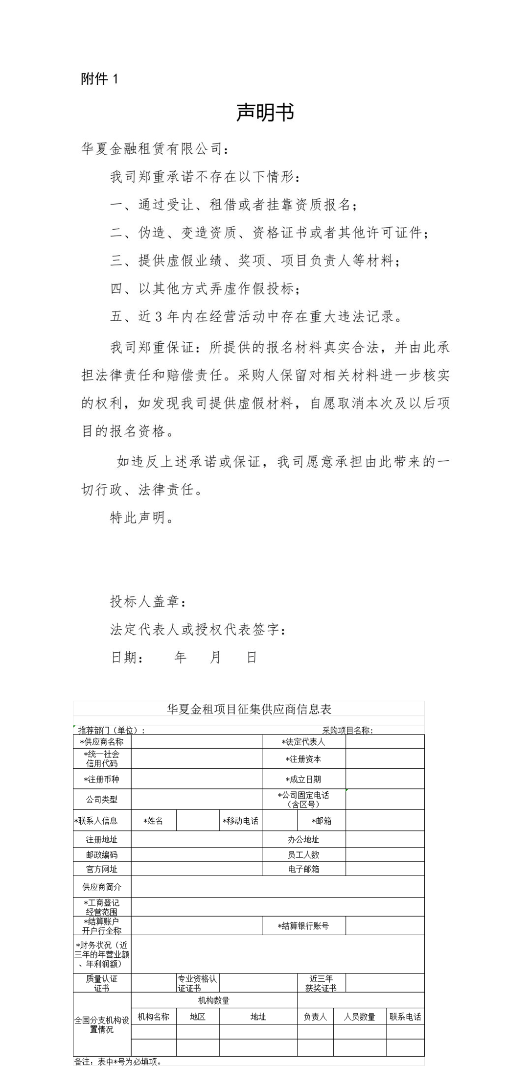 北极星储能网讯:2025年10月22日,华夏金融租赁有限公司公开征集用户侧电化学储能电站参与浙江区域虚拟电厂AGC调频业务服务商,采购内容为服务商通过虚拟电厂平台调用华夏金租用户侧电化学储能电站资源,参与调峰、调频、备用等辅助服务并获取收益。 本次招标要求服务商已获得有关部门虚拟电厂运营许可资质,具有虚拟电厂具备参与调频、需求侧响应及其他辅助服务能力。 要求投标人提供业绩列表,包括运营许可资质、虚拟电厂注册证明,电站聚合业绩,业绩附相关案例合同复印件并加盖公章。 本项目不接受联合体投标。 原文如下: 华夏金融租赁有限公司用户侧电化学储能电站参与浙江区域虚拟电厂AGC调频业务服务商公开征集公告 华夏金融租赁有限公司现向社会公开征集优秀用户侧电化学储能电站参与浙江区域虚拟电厂AGC调频业务服务商,欢迎报名参加,本次供应商公开征集具体情况和要求如下: 一、供应商寻源名称:华夏金融租赁有限公司用户侧电化学储能电站参与浙江区域虚拟电厂AGC调频业务服务商公开征集 二、征集单位:华夏金融租赁有限公司 三、采购内容:(以后期采购活动要求的内容为准) 服务内容:服务商通过虚拟电厂平台调用我司用户侧电化学储能电站资源,参与调峰、调频、备用等辅助服务并获取收益。 四、资格要求 1.在中国境内依法注册、具有独立法人资格、有能力提供服务的企业; 2.供应商未被“信用中国”网站列入严重违法失信被执行人、重大税收违法案件当事人(以“信用中国”网站在线查询结果截图为准); 3.供应商近三年来未被“中国政府采购网”等平台列入违法失信行为记录名单,且未被金融监管机构纳入特别监管名单; 4.参加此次招标前三年内,在经营活动中没有重大违法记录或重大行政处罚记录且没有对公司经营产生影响的重大法律纠纷;无严重违约及重大产品及服务质量问题;没有出现违背社会责任的不良信息;无骗取中标或存在其他影响中标结果的违法行为; 5.已获得有关部门虚拟电厂运营许可资质; 6.虚拟电厂具备参与调频、需求侧响应及其他辅助服务能力 7.本项目不接受联合体投标; 五、需提交以下材料: 1.营业执照或事业单位法人证书复印件加盖公章; 2.法定代表人授权书加盖公章; 3.企业资质证书复印件(如有)与企业简介; 4.请列明业绩列表,包括运营许可资质、虚拟电厂注册证明(含注册时间),电站聚合业绩,业绩附相关案例合同复印件并(需至少包含合同首页、签署盖章页、具体实施的内容页)加盖公章; 5.提供近三年内包含:在经营活动中没有重大违法记录或重大行政处罚记录且没有对公司经营产生影响的重大法律纠纷;无严重违约及重大产品及服务质量问题;没有出现违背社会责任的不良信息;无骗取中标或存在其他影响中标结果的违法行为的书面声明,并加盖公章(模板见附件1); 6.在“信用中国”网站中未被列入失信被执行人和重大税收违法案件当事人两个名单的查询结果截屏并加盖公章; 7. 华夏金租项目征集供应商信息表(详见附件2)。 |
