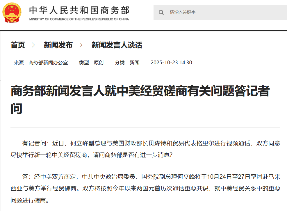 商务部新闻发言人就中美经贸磋商有关问题答记者问。有记者问:近日,何立峰副总理与美