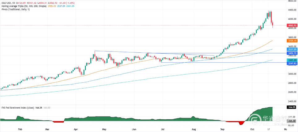 【华通白银网10月23日讯】•黄金下跌超1.5%,徘徊在4050美元附近,尽管美元略有疲软。 •由于市场押注美联储将延长宽松政策,金价今年迄今仍上涨54%。 •据报道,白宫正在考虑对中国科技产品实施新的出口限制,这加剧了地缘政治的矛盾。 黄金价格周二暴跌超5%,创下五年来最大单日跌幅后,周三下跌超1.50%,交易员们为美国最新通胀报告的发布做准备。截至撰写本文时,黄金在达到4,161美元的高点之后回落至4,050美元。 焦点转向周五CPI数据,交易员在创纪录的反弹后削减敞口 尽管美元指数显示美元小幅下跌0.13%至98.84,但金价仍然承压,交易商将黄金现货价格推低至10月8日创下的4059美元/盎司的历史高点下方。 尽管金价持续回落,但今年迄今为止的涨幅仍超过54%,原因是越来越多的人猜测美联储将继续降低借贷成本。交易员预计,在2025年的最后两次政策会议上,美联储将放松50个基点。 本周五,美国劳工统计局(BLS)将公布9月份美国消费者价格指数(CPI),分析师预计核心CPI将稳定在3.1%左右。 近日,路透社消息人士报道称,白宫正在考虑限制美国软件对华出口。 每日市场动向:尽管华盛顿发出威胁,但黄金仍在下跌 •路透社透露:“特朗普政府正在考虑一项计划,限制从笔记本电脑到喷气发动机等一系列软件驱动对华出口。”其中一名消息人士称,这篇文章提到,美国政府的一些官员可能被用来向中国施压,但没有付诸实施。 •美国10年期国债收益率下降1.5个基点,至3.951%。与金价成反比的美国实际收益率跌至1.671%,下滑逾两个基点。 •除了美国通胀数据的发布,投资者还在等待周五发布的标准普尔10月份全球采购经理人指数(PMI)。 •市场参与者预计,美联储今年降息50个基点的可能性为98%。值得注意的是,交易员们也已经消化了2026年降息近100个基点的预期。 技术展望:尽管金价有所回落,但仍保持看涨 金价回落至20日简单移动均线4017美元下方后,曾下探4004美元低位,随后重新收复该均线关口,目前正在测试10月8日高点4059美元阻力。相对强弱指标(RSI)退出超买状态,但仍高于50水平,表明多头仍掌控局面。 如果黄金攀升至4100美元上方,下一个阻力位将是当日高点4161美元,随后是4200美元。在进一步走强的情况下,接下来是4300美元,之后是4380美元的历史高点。 反之,若金价保持在4,059美元下方,则将为测试4,000美元扫清道路。进一步跌破4000美元,或将加速金价跌势,为测试3,900美元和50日均线3,722美元扫清障碍。 (黄金日线图) 美国时间10月22日,全球最大白银ETF——iShares Silver Trust的白银持仓量为15597.61吨,较前一交易日减少79.03吨。全球最大黄金ETF—SPDR GOLD TRUST的黄金持仓量为1052.37吨,较前一交易日减少6.29吨。 白银网 |