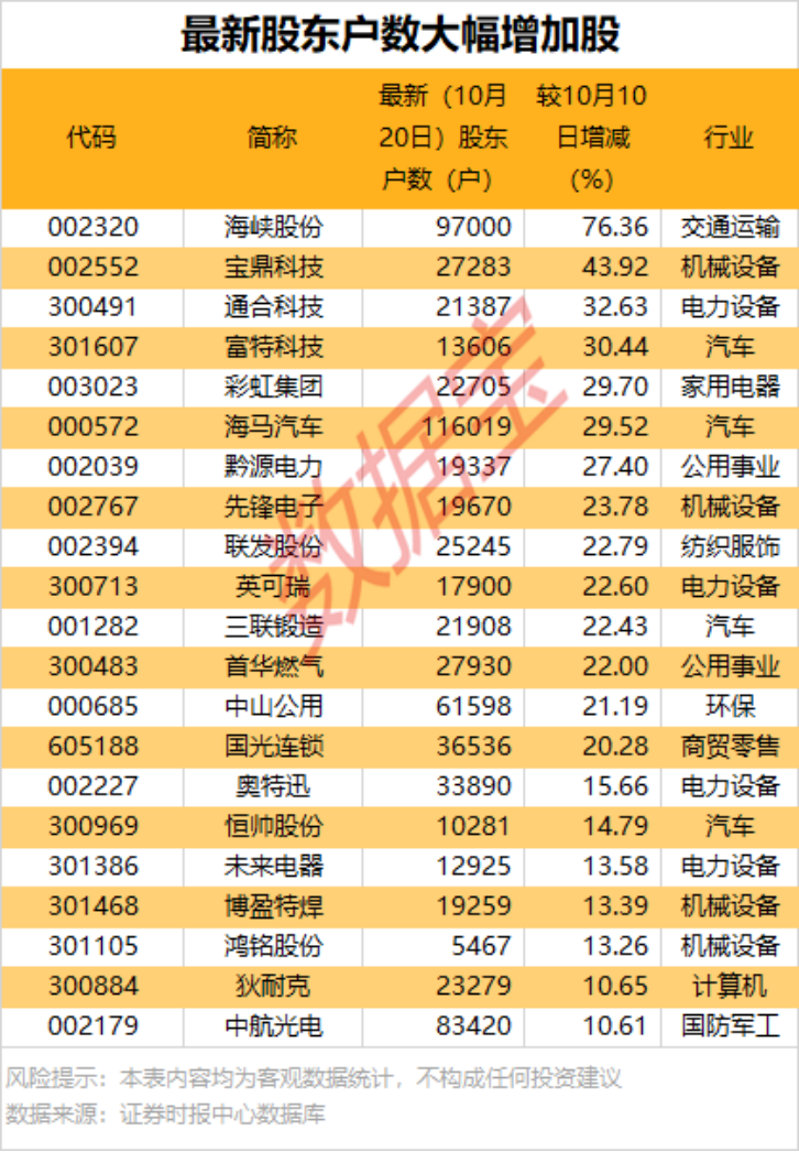 市场主要指数今日(10月23日)集体低开。 盘面上,工程机械板块大幅走低,铁拓机械、万通液压、恒立钻具、志高机械等昨日强势股,今日跌幅居前。 半导体板块弱势,灿芯股份、神工股份、泰凌微等跌超5%。油气开采及服务板块跌幅居前,准油股份、潜能恒信、通源石油等跌超6%。 深圳国企改革概念爆发,板块内,建科院“20cm”涨停,广田集团、特发信息、深赛格等多股涨停。消息面上,深圳市地方金融管理局等多部门印发《深圳市推动并购重组高质量发展行动方案(2025—2027年)》。 煤炭开采加工板块掀涨停潮,陕西黑猫、云煤能源、郑州煤电、大有能源等集体涨停,其中,大有能源收获10天9板。 拟重大资产重组,时空科技“一字”涨停 时空科技公布发行股份及支付现金购买资产并募集配套资金的预案,本次交易预计构成重大资产重组。今日开盘该股“一字”涨停。 公司拟通过发行股份及支付现金的方式向张丽丽、陈晖、深圳东珵管理咨询合伙企业(有限合伙)、深圳普沃创达管理咨询合伙企业(有限合伙)等19名交易对方收购嘉合劲威100%股份,并向控股股东、实际控制人宫殿海发行股份募集配套资金。 标的公司主要从事内存条、固态硬盘等存储产品的研发、设计、生产和销售,拥有光威、阿斯加特和神可三大产品线,提供消费级、企业级、工业级存储器产品及行业应用解决方案。 本次交易完成后,上市公司将切入到存储领域,打造第二增长曲线,加快向新质生产力转型步伐,增加新的利润增长点,从而进一步提高上市公司持续盈利能力。 12股股东户数降逾一成 统计显示,共有487只个股公布了10月20日股东户数,与上期(10月10日)相比,股东户数下降的有218只。其中股东户数降幅超一成的有12只。 股东户数降幅最多的是信凯科技,截至10月20日最新股东户数为11469户,较10月10日下降26.54%;其次是鼎信通讯,截至10月20日最新股东户数为32706户,较10月10日下降24.75%;泰禾股份、耐普矿机股东户数降幅也均超20%。 最新股东户数环比增加股中,21股股东户数增幅超一成,海峡股份股东户数增加最多,最新股东户数为97000户,环比增加76.36%;其次是宝鼎科技,股东户数环比增加43.92%;通合科技、富特科技股东户数增加超30%。 31股杠杆资金加仓超1亿元 截至10月22日,市场融资余额合计2.44万亿元,较前一交易日增加82.61亿元,这已经是融资余额连续3个交易日持续增加。 具体到个股,10月22日获融资净买入千万元以上的有449只,其中31只融资净买入额超亿元。寒武纪-U融资净买入额居首,当日净买入6.75亿元;其次是天孚通信、中材科技,融资净买入金额分别为6.61亿元、3.93亿元;融资净买入金额居前的还有三花智控、香农芯创、华工科技等。 声明:数据宝所有资讯内容不构成投资建议,股市有风险,投资需谨慎。 校对:彭其华 |