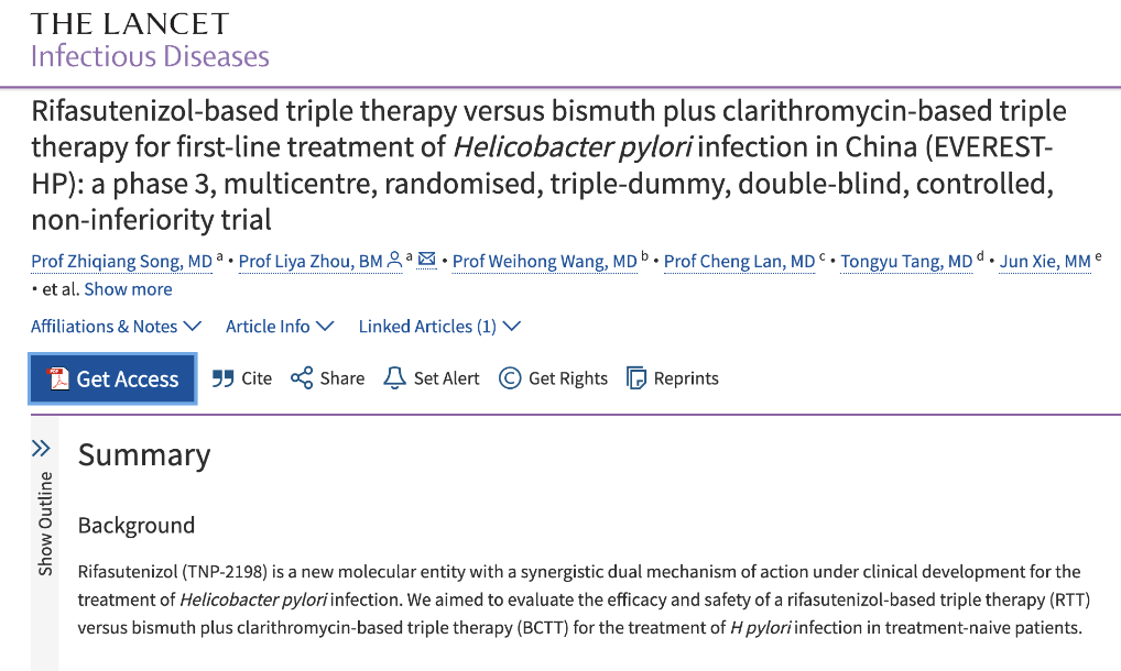 新华社北京10月22日电(记者余佩璇)你是否经常感到胃痛、腹胀、反酸?这很可能是胃里那个“隐形房客”——幽门螺杆菌在作祟。当我们饮用不干净的水、不使用公筷公勺共餐时,幽门螺杆菌这种看不见的健康威胁可能正悄然逼近。作为一个典型“病从口入”的疾病,它通过饮食等途径传播,与很多常见多发病,如胃癌、溃疡、萎缩性胃炎等密切相关。如今,幽门螺杆菌根除治疗或许有了新突破。 研究成果在线发表相关内容。新华社发(《柳叶刀》官方网站截图) 北京大学第三医院消化科周丽雅、宋志强教授团队带领全国40家医疗机构消化疾病诊疗中心,通过全球首个Ⅲ期临床试验,证实了含利福特尼唑的三联方案,比临床上常用的铋剂四联方案具有更高的根除成功率和更低的不良反应发生率,而且用药更少,服用更方便,将为全球幽门螺杆菌感染者带来了全新的治疗选择。相关成果日前于《柳叶刀-感染病学》在线发表。 图为相关研究成果。新华社发(北京大学第三医院供图) 这项在中国开展的多中心、随机、双盲、阳性对照研究,纳入700例幽门螺杆菌感染初治患者。宋志强介绍,利福特尼唑是我国自主研发的全球首创新型分子实体药物,专门针对幽门螺杆菌感染研发。相关基础和临床研究结果均显示,幽门螺杆菌对该药物普遍敏感,最小抑菌浓度低,有效克服幽门螺杆菌高耐药问题,而且表现出良好的安全性。 周丽雅表示,药物的问世和应用具有积极的临床价值和社会意义,受到国内外学术界的高度关注。 责编:刘茜 一审:刘茜 二审:印奕帆 三审:谭登 来源:新华网 |
