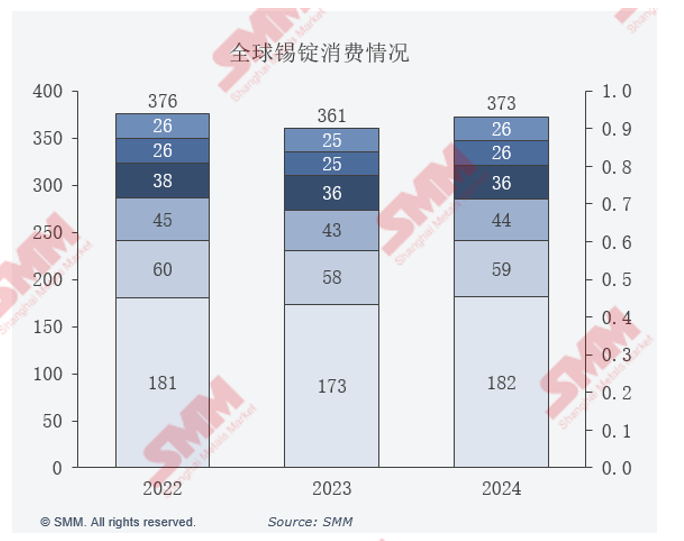 10月23日,在由上海有色网信息科技股份有限公司(SMM)、山东爱思信息科技有限公司以及个旧市产业开发集团有限公司联合主办,云南锡业股份有限公司特邀协办,JFX雅加达期货交易所作为战略合作伙伴,AETI印尼锡出口协会作为协会合作伙伴,广西华锡有色金属股份有限公司、个旧市千岛金属有限公司、惠州联熙电子科技有限公司、红河永森矿业有限公司、上海清算所作为支持单位支持的2025 SMM(第十五届)锡产业链大会上,SMM锡品目高级分析师陈朋围绕“资源瓶颈与需求重构下的锡产业链变革”这一主题进行了论述。 一、矿端紧缺与冶炼承压:低TC下的产业链博弈 全球锡矿供应格局正经历地缘重构,区域性紧张常态化 中国锡矿静态可采年限不足15年,资源开发强度超临界值(以全球23%储量贡献45%产量),海外权益矿布局(如刚果(金)、澳大利亚)成为供应链安全关键支点,但地缘波动仍构成潜在威胁。 其结合全球锡精矿储量图分析:全球锡资源分布高度集中,中国、印尼、缅甸三国合计占比超50%。中国作为最大生产国(45%产量)与印尼形成双核驱动,但资源禀赋差异显著。 锡矿产量格局:东南亚主导与非洲新兴力量崛起 传统产区产量收缩:2023年全球锡矿产量同比下降5.5%,主因缅甸禁矿(2023年8月全面停产)及印尼政策限制出口。 非洲项目增量对冲:刚果(金)Bisie矿(Alphamin公司)的Mpama South项目投产后成为全球第五大生产国。 缅甸佤邦地区经历近两年的禁矿限制,当前部分矿硐逐步复产中 刚果(金)锡矿事件链的核心矛盾在于地缘冲突与资源依赖的博弈 刚果(金)Bisie锡矿是全球第三大锡矿,2024年产量达1.73万金属吨,占全球供应量的6%。其对Bisie锡矿矿区停工、和平谈判取消、运输受阻以及Bisie锡矿分阶段复产等进行了梳理,并总结了风险点——非洲供应链稳定性待验证:中国作为最大进口国,精炼锡产业链受刚果(金)扰动显著,而AI、新能源等需求增长进一步放大供需矛盾。 中国锡矿进口结构:缅甸依赖度下降与多元化挑战 •2023年前:缅甸曾占中国锡矿进口量的72%-85%,但2023年8月佤邦禁矿政策实施后,其供应量锐减。至2024年,缅甸进口占比降至48.1%,2025年进一步下滑至24%-30%。 •替代来源崛起:非洲(刚果金、尼日利亚)、南美(秘鲁、玻利维亚)及澳洲进口量显著增长。例如,2025年刚果金进口占比升至28%,尼日利亚进口占比11%,澳洲进口量同比激增101%。近期锡矿进口盈亏20日移动均值持稳。 中国精锡产量占全球50%,原料紧缺传导至冶炼端减产 其结合全球精锡产量分布图得出了关键发现: •2024年中国精锡产量18.6万吨;云南占全国产量的半壁江山(个旧为集群核心)。 •区域性分化加剧:印度尼西亚产量稳居第二;非洲以粗锡为主,深加工能力不足。 原料紧缺压力正向冶炼端充分传导 •矿端供应弹性严重不足 地缘性扰动常态化:缅甸佤邦锡矿复产进度远低预期;刚果(金)Bisie矿区因武装冲突停产。 •新增产能贡献有限:2025年全球主要新项目增量微弱,难以弥补主流矿区产量下滑非洲项目增量对冲:刚果(金)Bisie矿(Alphamin公司)的Mpama South项目投产后成为全球第五大生产国。 TC费用跌至历史低位,中小冶炼厂生存压力加剧 原料成本高企+环保投入上升,行业利润向上游集中 •加工费(TC)持续探底:中国云南地区40%品位锡精矿加工费已跌至1.1万元/吨的近五年新低,挤压冶炼厂利润空间。缅甸禁矿导致原料争夺白热化,小型冶炼厂面临“无米下锅”。 •成本与环保双杀:中国冶炼企业需应对资源税改革、排放标准提升环保成本增加,低TC下部分企业减产止损。 二、需求端新旧动能转换与库存结构性失衡 2025年8月份全球制造业PMI为49.9%,较7月份上升0.6个百分点,接近50%的荣枯线 •2025年8月份全球制造业PMI为49.9%,较7月份上升0.6个百分点,接近50%的荣枯线。当前全球经济恢复在波动中缓慢前行。贸易摩擦与地缘政治冲突对全球经济的扰动仍在,但世界各国寻求新的合作路径和探索供应链产业链优化的意愿也持续提升。全球经济恢复的韧性也逐步显现。 消费结构变迁:半导体驱动与传统领域承压 •全球AI技术发展不断深入和扩展,对于更加强大、高效且能源友好的计算资源的需求也将持续增长。锡作为“算力金属”之一,数字经济的底层原材料,预计伴随AI的爆发式发展,叠加我国对于电子产品等消费的鼓励政策推出,有望进一步带动相关产品耗锡需求增长并成为锡需求的新增长点,锡有望持续受益。 终端环节:费城半导体指数与10年期美债实际收益率呈现显著的负相关性,AI需求推动半导体企业产能利用率创历史新高 •近两年,费城半导体指数与10年期美债实际收益率呈现显著的负相关性,主要由流动性预期和估值压制驱动。 •2025年,半导体及相关电子设备的产能利用率达到81.4%,显著高于美国制造业整体水平(约73.3%)。晶圆制造龙头如台积电(TSMC)的平均产能利用率维持在90%以上的高位。这种高负荷生产直接拉动了对锡材的持续稳定需求。 终端锡化工及马口铁:传统消费领域增长乏力 •商品房的建设不是一个独立的过程,它通常伴随着建筑材料的需求增加。尽管商品房销售面积连续两年下滑,但竣工需求和政策支持(如保交楼、基建投资)推动PVC消费增长,近两年两者关联性保持“弱正相关”。 •近两年镀锡板行业呈现“高端紧缺、低端过剩”的分化格局,龙头企业通过技术升级和出口市场巩固优势,而