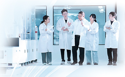 天津大学合成生物技术全国重点实验室里,元英进(中)正在与学生们讨论。