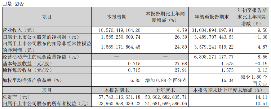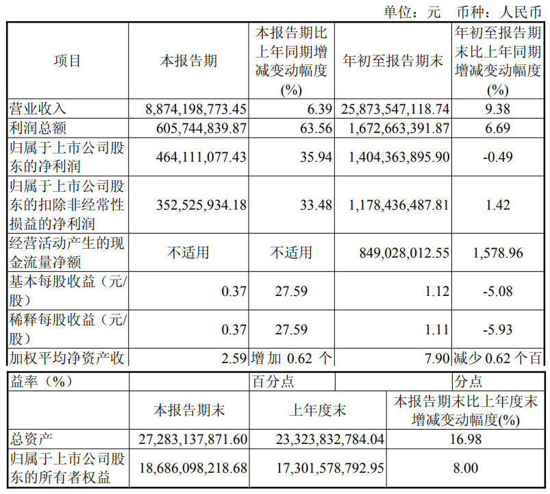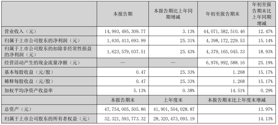 云铝股份 云铝股份也在近日发布了其业绩报告,公告显示,公司第三季度实现营业收入149.93亿元,同比增长3.13%;归属于上市公司股东的净利润16.3亿元,同比增长25.31%; 公司前三季度公司共实现营业收入440.72亿元,同比增长12.47%;归属于上市公司股东的净利润43.98亿元,同比增长15.14%。