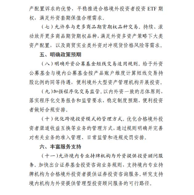 近日,中国证监会印发《合格境外投资者制度优化工作方案》(以下简称《工作方案》)。 党的二十届三中全会明确提出优化合格境外投资者制度。合格境外投资者制度是我国资本市场最早施行的开放制度之一,推出以来总体保持运行平稳,是境外投资者投资中国的综合性资产配置渠道,在扩大资本市场对外开放方面发挥了积极作用。 《工作方案》以习近平新时代中国特色社会主义思想为指导,深入贯彻落实二十届三中、四中全会,中央金融工作会议精神,坚持统筹金融开放和安全,坚持市场化、法治化、国际化方向,以优化准入管理、便利投资运作等为着力点,力争用两年左右的时间,推动落实优化合格境外投资者制度机制的改革举措,增强制度对境外中长期资金的吸引力,形成在岸与离岸渠道协调互补、配置型与交易型资金平衡发展、境内外证券基金期货机构良性互动的开放新格局。 下一步,中国证监会将推动《工作方案》提出的各项开放优化举措尽快落实落地,并在此基础上进一步深化对合格境外投资者制度的研究,不断丰富提升对外开放制度吸引力的改革举措。 ![]() ![]() ![]()