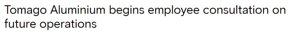 寻找具有价格竞争力的能源仍然是核心挑战,电力成本目前占Tomago铝业运营成本的40%以上。基于迄今为止收到的市场提案,从2029年1月起,无论是燃煤发电还是可再生能源方案的成本都将显著增加,这将从根本上改变运营的经济性,导致该冶炼厂无法持续经营。 因此,Tomago Aluminium已到了一个必须考虑在其当前电力供应合同结束时停止运营的节点。 关于该冶炼厂的未来,尚未做出最终决定。此次磋商过程将持续至11月21日,为员工和工会代表提供机会,在决定做出前就这一潜在路径分享反馈意见。 Tomago铝业首席执行官Jérome Dozol表示:“我们继续与各利益相关方接洽,为Tomago寻找可行的路径。不幸的是,迄今为止收到的所有市场提案都显示,未来的能源价格在商业上是不可行的,并且可再生能源项目何时能够以我们所需的规模投入使用,也存在重大不确定性。” “虽然尚未做出决定,但走到这一步是艰难的。我们的重点仍然是安全运营,并尽快给我们的员工一个确定的答案。” 补充信息: Tomago Aluminium成立于1983年,是澳大利亚最大的铝冶炼厂,年产铝量高达59万吨--几乎占澳大利亚年铝产量的40%。 Tomago Aluminium是一家独立管理的合资企业,由力拓(51.55%)、Gove Aluminium Finance Ltd(36.05%)和挪威海德鲁(12.40%)共同拥有。 该冶炼厂位于新南威尔士州的Tomago,距离纽卡斯尔以西约13公里。 Tomago Aluminium与AGL的现有电力供应合同将于2028年12月到期。 |