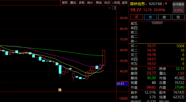 人工智能概念股今日也表现活跃,板块指数日K线上连续第7日收阳。路桥信息午后30%涨停,锦富技术、楚天科技、海峡创新等多股20%涨停,天下秀、燕麦科技、税友股份、粤传媒等近20股涨停或涨超10%。