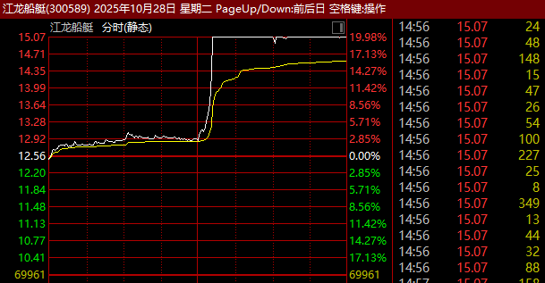 今日,A股冲高回落,上证指数4000点得而复失,沪深300亦失守4700,科创50则受阻于1500点,深证成指、创业板指也均小幅调整,市场成交小幅萎缩至2.17万亿元。 盘面上,国防军工、林业、玻璃玻纤、海峡西岸等板块涨幅居前,贵金属、风电设备、工程咨询服务、工程机械等板块跌幅居前。 Wind实时监测数据显示,国防军工获得逾84亿元主力资金净流入,电子获得逾61亿元净流入,计算机获得逾59亿元净流入,电力设备、基础化工均获得超40亿元净流入,家用电器、轻工制造、综合、机械设备均连续7日获得净流入。有色金属、建筑装饰、公用事业则遭主力资金净流出逾10亿元。 展望后市,中金公司指出,市场或将延续震荡上涨趋势,科技仍为持续主线。趋势方面,建议关注全球共振的人工智能题材方面,建议关注“十五五”量子科技、生物制造、氢能、核聚变能、脑机接口、具身智能、第六代移动通信等重点产业规划。同时需关注月末的美联储议息会、APEC会议等一系列宏观大事落地。 市场焦点方面,国防军工股午后全线走强,地面兵装方向领涨,板块指数下午开盘后放量快速拉升,盘中一度大涨逾6%,长城军工强势涨停,北方长龙、捷强装备等涨幅居前。 军贸概念、军民融合、军工信息化、航空装备等板块也跟随走强。江龙船艇(300589)午后开盘仅约10分钟就直线20%涨停,青岛双星、航天发展、榕基软件、安泰科技等也纷纷涨停。