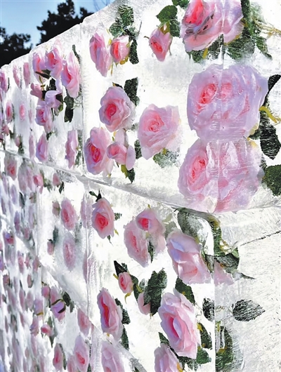 沈阳市南湖公园设立的冰封玫瑰墙。 沈阳市城管执法局供图