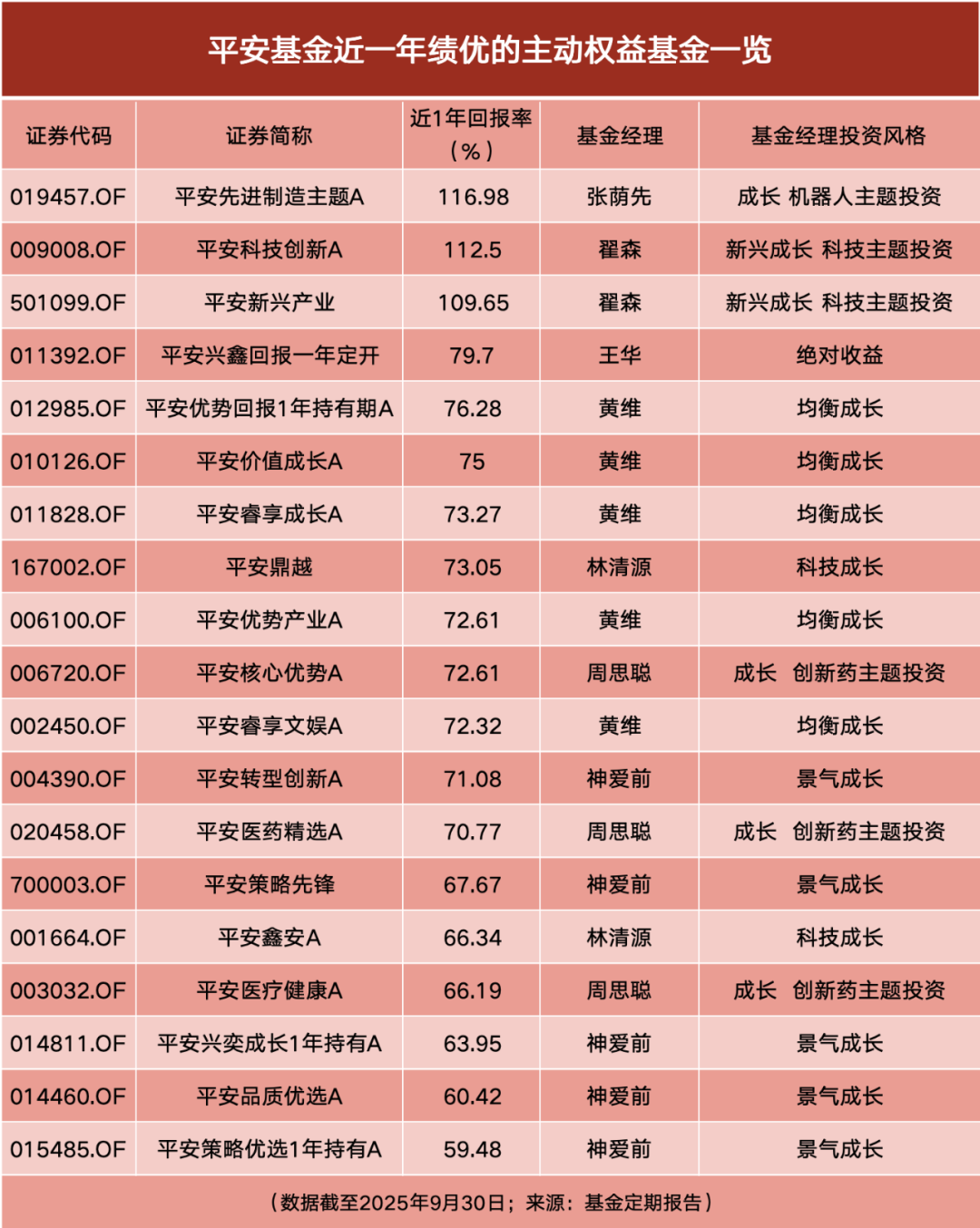 “四真机制”构筑投研“护城河” 体系与产品的卓越表现,离不开底层机制的坚实支撑。在平安基金,这套底层机制被凝练为“四真机制”——真机制、真团队、真人才、说真话。它们如同四根坚实的支柱,共同构筑起一个透明、高效、能持续进化的投研生态,不仅确保了投资流程的严谨可靠,更在深层次上对抗着投资世界固有的不确定性。 真机制体现为透明的游戏规则。在这里,研究贴合投资实战,以价值贡献为导向,考核机制完全透明,业绩是核心评判标准。“我们内部只以业绩作为导向,不论资历,只论业绩。”神爱前表示,针对不同产品,公司设计差异化考核:全市场基金关注风格内阿尔法,主题基金对标行业指数,绝对收益产品重视波动与回撤控制。 真团队意味着打破层级的协作模式。团队内部多元风格互补,投资理念与成功标的相互传导,以团队力量提升个人成长。投研讨论中,新人可直言挑战总监观点,而对方不仅不抵触,反而认真记录。每周的投研例会不仅是信息场,更是思想碰撞的平台,每个人的观点都受到重视。 真人才体现在尊重个性的成长路径。公司培养理念并非塑造同一模式,而是助每个人发挥独特优势。“基金经理的投资,一定是自己世界观、人生观、价值观的映射,不能生搬硬套。”神爱前说。价值团队的莫艽专注长期价值挖掘,成长团队的黄维重视产业景气度研究,尽管方法各异,公司都鼓励他们“坚持自我,发现自我”。这种“和而不同”的人才观,让每个基金经理都能在自己的能力圈内深耕,为投资者提供了风格稳定、各具特色的工具选择,避免了“挂羊头卖狗肉”的风格漂移之忧。 说真话则形成独特的知识分享文化。在许多机构,投研人员或担心“独门秘籍”被学走,但在平安基金,说真话、分享真知被鼓励,且纳入考核范畴。智能投研平台记录每个研究观点与交易决策,使贡献有迹可循,从制度上避免“搭便车”,让知识分享成为荣誉。 在平安基金,“平台化”不是口号,而是深入细节的实践。公司注重可持续性,建立数据可视化系统,每笔操作可追溯,实现业绩可归因、可复盘。更重要的是,公司形成“容忍失败”的文化。投资被视为不断试错与学习的过程,这种文化让基金经理能从容坚持理念,不为短期波动过度焦虑。 长期主义的复利样本 当市场站上4000点,投资决策环境更趋复杂。 而此刻平安基金选择了一条更扎实的路。它所提供的,是业绩持续输出的可期待,是投资理念稳定贯彻的可信任,是运作过程日益透明的可理解。 这在市场波动时尤其凸显。当单只基金业绩出现波动,投资者不会过度恐慌,因他们知悉这只是体系中的正常现象;当某位基金经理离职,公司也不会陷入混乱,因平台机制保障了投资的连续性。 这一切,源于“人才—平台—机制—文化”飞轮的正向转动。“我们已经形成正循环,”神爱前总结,“人才聚集形成平台,平台需要机制反馈和保护,机制需要文化认同,而优秀文化又吸引更多人才。” 在高度不确定的市场中,平安基金用七年构建了一个相对确定的投资世界。其提供的不是永远上涨的承诺,而是一种可理解、可信任、可期待的投资体验。这种源自体系化建设的踏实,本身就成了稀缺品,也是长期主义最动人的复利。 或许,这正是资管行业未来的方向:从依赖个人的明星制,转向依靠体系的平台化;从追求短期爆发力,转向注重长期持续性。平安基金的探索,已为行业提供一个可参考的样本,这也正是平安基金在投资长跑中最独特的竞争力。 注:基金有风险,投资需谨慎。上述产品业绩来源如无特别说明,均来源基金定期报告2025年三季报。业绩排名数据来源银河证券。平安基金主动权益基金今年以来收益率来源国泰海通证券,数据截至20250930.平安科技创新混合产品风险等级为R4(中高风险),其它产品风险等级均为R3(中风险)。基金的过往业绩并不预示其未来表现。材料中的信息均来源于公开资料,基金管理人对相关信息的完整性和准确性不做保证,相关分析意见基于对历史数据的分析结果,相关意见和观点未来可能发生变化,内容和意见仅供参考,不构成任何投资建议,基金管理人不就材料中的内容对最终操作建议做任何担保。基金的过往业绩并不预示其未来表现,基金管理人管理的其他基金的业绩并不构成对本基金业绩表现的保证。基金管理人承诺以诚实信用、勤勉尽责的原则管理和运用基金资产,但不保证本基金一定盈利,也不保证最低收益,不保证本金。基金管理人提醒投资人基金投资的“买者自负”原则,在做出投资决策后,基金运营状况与基金净值变化引致的投资风险,由投资人自行负担。投资人购买基金,既可能按其持有份额分享基金投资所产生的收益,也可能承担基金投资所带来的损失。投资人应当认真阅读《基金合同》、《招募说明书》等基金法律文件,全面认识本基金的风险收益特征和产品特性,并根据自身的投资目的、投资期限、投资经验、资产状况等判断基金是否和投资人的风险承受能力相适应,理性判断市场,谨慎做出投资决策。基金管理人和股东实行业务隔离制度,股东并不直接参与基金财产的投资运作。 张荫先:平安先进制造主题股票型发起式证券投资基金成立于2023年10月24日,业绩比较基准为中证智能制造主题指数收益率×85%+中证全债指数收益率×10%+恒生指数收益率(经汇率调整)×5%。2
