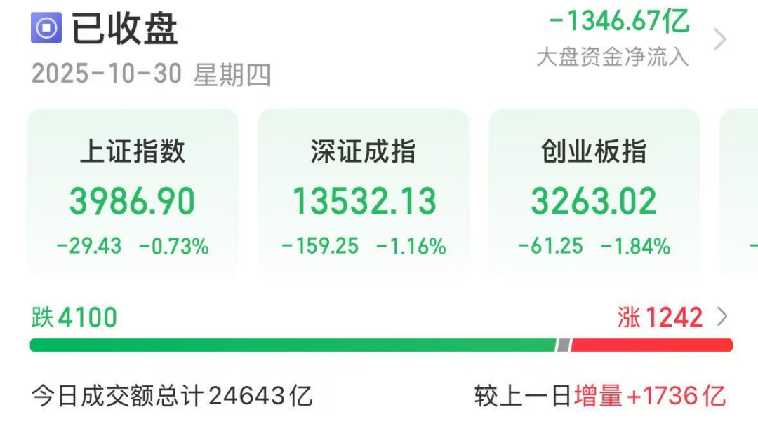 今年第三季度,锂矿概念股业绩显著回暖。 今日(10月30日),A股市场全天震荡,沪指失守4000点关口,深证成指、创业板指均跌超1%。量子科技概念继续活跃,格尔软件、神州信息涨停。培育钻石、钢铁、钛白粉等板块涨幅居前,CPO、复合集流体、游戏、PCB等板块跌幅居前。