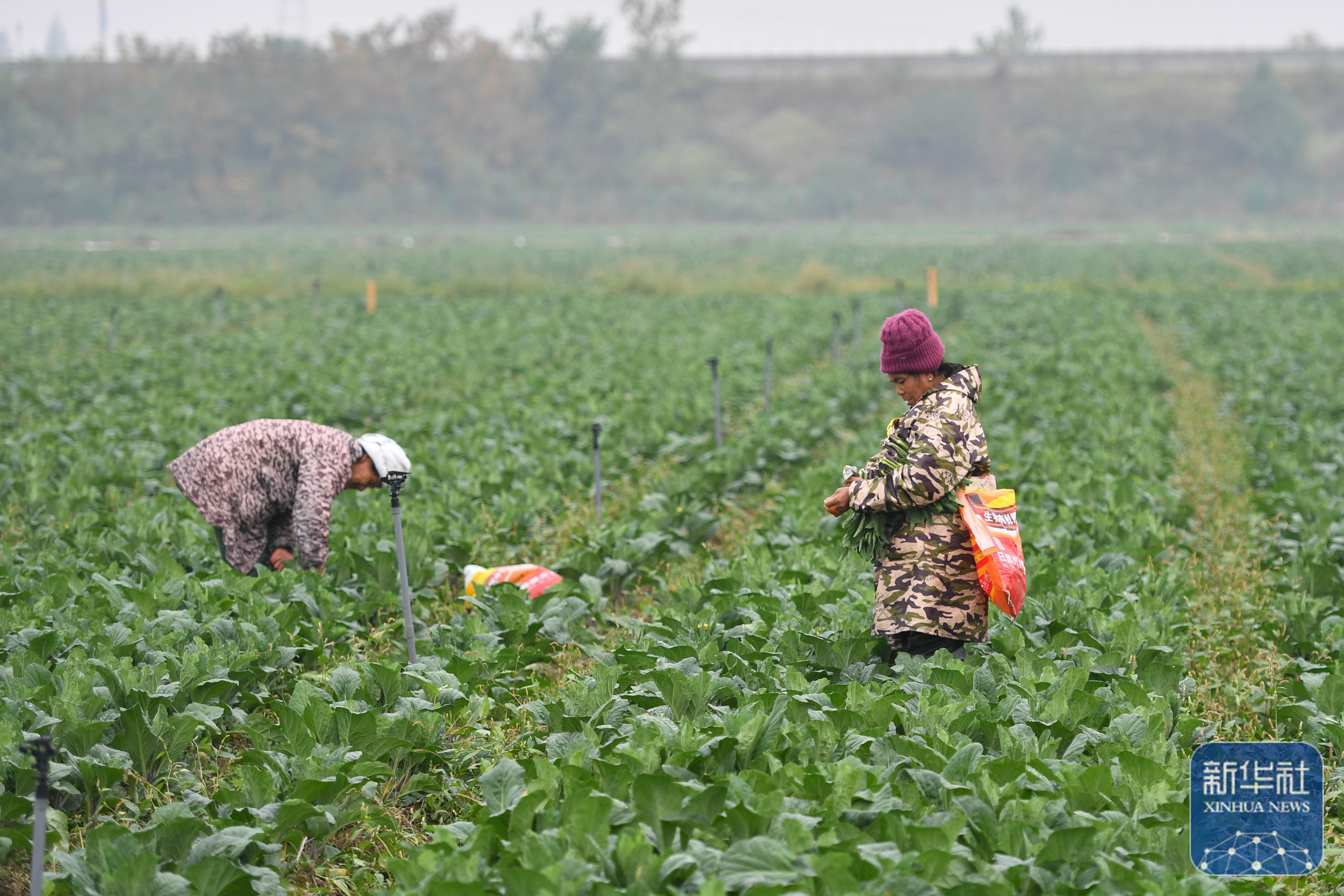 ↑ 10月30日,菜农在沅江市草尾镇乐园村蔬菜田里采收。