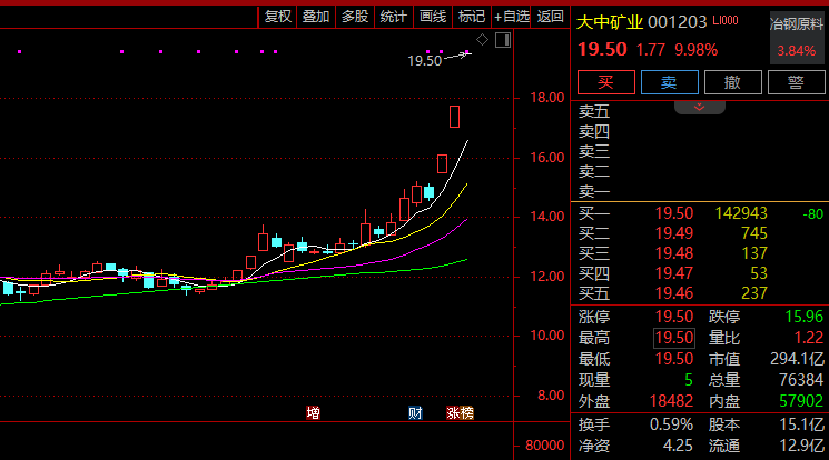 港股方面,恒生指数和恒生科技指数均飘绿。中国中车跌超8%,中国中冶跌超4%,比亚迪股份跌超5%,中芯国际跌逾4%。阿里巴巴、小米集团等跌超1%,信达生物涨超3%,老铺黄金涨近2%。 有色金属、黄金板块冲高 盘初,有色金属、黄金板块冲高,大中矿业3连板,湖南黄金触及涨停,华锡有色、白银有色、兴业银锡跟涨。