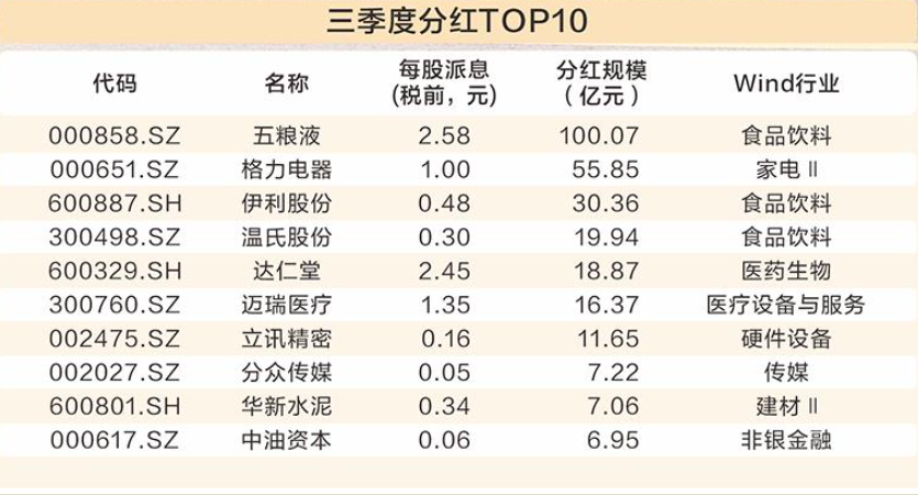 | A股上市公司三季报披露收官。已披露三季报的5414家上市公司中,近八成前三季度实现盈利,超五成实现净利润增长。一年多次分红已成为常态,209家上市公司提出三季度分红方案,合计计划分红382亿元。 高技术制造业、装备制造业等行业保持较快增长,钢铁、有色金属、传媒、非银金融业绩修复明显。三季报披露后,有近500家上市公司获得机构上修全年业绩预期,显示其亮眼表现具有延续性。 近八成公司盈利 Wind数据显示,截至10月30日21时,共有5414家上市公司披露三季报,其中4196家上市公司前三季度实现盈利,占比近八成;2904家公司净利润同比实现增长,占比超过53%,业绩增长比例较上年同期有所提升。 整体来看,前三季度,上市公司合计实现营业收入50.8万亿元,实现净利润4.54万亿元,营收、净利润的中位数分别为13.01亿元、6461.11万元,分别同比增长3.46%、2.86%。如果以第三季度业绩表现来看,营收、净利润同比增长幅度的中位数分别为4.27%、5.78%。 分行业看,申万31个一级行业中,除房地产行业业绩整体承压外,其余30个行业在前三季度均实现整体盈利,17个行业净利润增长。其中,钢铁、有色金属、传媒、非银金融等行业净利润增幅居前,同比增速分别达749%、41%、39%、38%,电子、计算机两大科技行业景气度维持高位,净利润同比增幅超过30%。 聚焦第三季度经营表现,有14个行业实现单季度净利润环比增长,经营业绩增长呈现加速态势。其中,非银金融、交通运输、电子、煤炭、电力设备等行业第三季度净利润环比增幅超过20%,非银金融第三季度净利润环比增幅超过100%。 679家公司净利润同比翻倍 Wind数据显示,前三季度归母净利润同比增幅超过10倍的企业达到58家,679家上市公司归母净利润同比翻倍。 方正电机、晶瑞电材等公司前三季度净利润同比增长超过100倍。工商银行、建设银行、农业银行、中国银行、中国人寿、中国平安、中国移动、招商银行、中国海油等9家公司前三季度净利润突破千亿元。