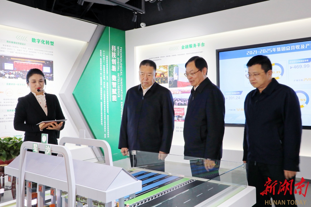 12月11日下午,省政协主席毛万春率队来到湖南省高速公路集团有限公司宣讲调研。图为毛万春在省高速公路展览馆调研。 在省高速公路展览馆,毛万春一行详细了解我省高速公路建设与发展历程,并听取集团有关国企改革、经营管理、产业发展、数字化转型以及智慧高速应用场景等情况的介绍。
