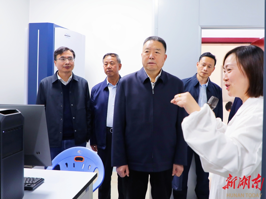 12月10日下午,省政协主席毛万春率队在中国科学院亚热带农业生态研究所宣讲调研。图为毛万春在畜禽养殖污染控制与资源化技术国家工程实验室等机构调研。 毛万春一行来到畜禽养殖污染控制与资源化技术国家工程实验室、饲草种质高效设计与利用全国重点实验室、中国科学院亚热带农业生态过程重点实验室等机构,详细了解实验室平台建设运行、科研攻关成果、人才队伍建设等情况。