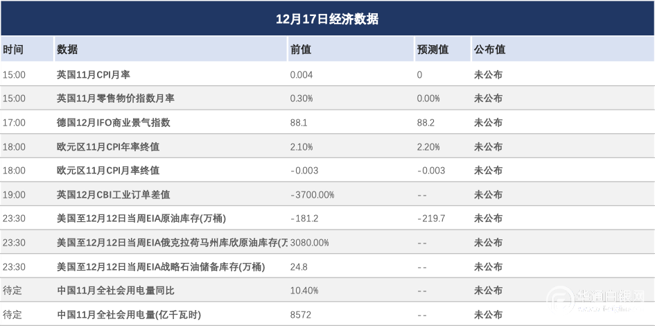 【华通白银网12月17日】•由于对俄乌和平协议可能缓解限制的乐观情绪,布伦特原油价格跌至每桶60美元以下。 •美国关键就业数据公布后,投资者谨慎行事,导致黄金和白银价格回落。 •多数基本金属价格下跌,但铝价周二上涨。 周二,布伦特原油价格7个月来首次跌破60美元/桶。由于俄罗斯和乌克兰之间达成和平协议的希望削弱了市场情绪,油价承压。 与此同时,在美国公布就业数据后,黄金价格大部分时间都处于下跌状态,此后金价保持稳定。 由于投资者对美国经济数据的发布采取谨慎态度,基本金属价格走低。市场正密切关注美国经济数据,以寻找有关利率未来走向的迹象。 黄金和白银 投资者采取了谨慎的立场,导致金价周二下跌。 美国劳工统计局公布的数据显示,11月份美国非农就业人数增幅略高于预期。此前,美国政府停摆导致非农就业数据延迟公布。 当月就业人数增加了6.4万人,超过了道琼斯估计的4.5万人。失业率攀升至4.6%,高于预期。 除了11月份的数据,劳工统计局还发布了一份10月份的简短报告,显示就业岗位减少了10.5万个。 另外,接受路透社调查的经济学家此前预计,继10月份就业人数萎缩之后,11月份就业人数将增加5万人,失业率预计为4.4%。 本周晚些时候,投资者将密切关注美国11月消费者价格指数和个人消费支出指数,以获取有关美国明年货币政策的更多指标。 无息的黄金通常在利率较低的环境中走强。截至撰写本文时,COMEX黄金合约价格为4,334.10美元/盎司,下跌0.1%,白银合约价格为63.170美元/盎司,下跌0.7%。 Trade Nation资深市场分析师David Morrison称:“银价接近上周五以来的历史盘中高点64.65美元。但由于日MACD指标看起来超买,它有可能在某个阶段修正至下行。” 基本金属下跌 周二,多数基本金属的交易价格都略有下跌,但铝价略有上涨。 尽管存在这种潜在的推动力,但在周二美国经济数据公布后,股市和其他风险资产仍在走弱。 与此同时,加拿大政府批准了英美资源集团收购泰克资源有限公司(Teck Resources Ltd.)的交易,为这家价值500亿美元的金属巨头铺平了道路。将主要专注于智利和秘鲁的铜矿开采业务。与此同时,英美资源集团的铜业务也已成为竞争对手的目标,这家总部位于伦敦的公司两次拒绝了全球最大矿商必和必拓集团的收购要约就是明证。英美资源集团宣布,将在15年内在加拿大投资100亿加元。该计划包括延长Highland Valley铜矿的使用寿命,增加Trail精炼综合设施的加工能力,并加快两个新铜矿项目的开发。 截至撰写本文时,伦敦金属交易所3个月期铜合约价格为11,639.15美元/吨,下跌0.3%,而铝合约价格上涨0.3%,为2,881.75美元/吨。 油价跌至数月低点 油价继续下跌,西德克萨斯中质原油价格跌至2021年以来的最低水平,因投资者担心乌克兰可能停火,可能会放松对俄罗斯原油的限制,进一步加剧本已供过于求的市场。 继周一收盘跌至四年低点后,西德克萨斯中质原油(WTI)跌破57美元/桶,布伦特原油跌破60美元。 特朗普强调了达成决议的可能性,他表示,在与乌克兰总统弗拉基米尔·泽伦斯基和欧洲领导人进行讨论后,结束俄罗斯在乌克兰冲突的协议比以往任何时候都要接近。 Trade Nation资深市场分析师David Morrison表示,“日MACD指标已大幅回落,显示下行动能增强,但仍远未超卖。” 尽管如此,过去8天来,油价一直承受着持续的抛售压力,因此不能排除出现某种反弹的可能性。 莫里森表示,如果这被证明是软弱和半心半意的,那么这将意味着价格可能会进一步下跌。 截至撰写本文时,WTI原油价格为55.68美元/桶,下跌1.8%,布伦特原油价格为59.56美元/桶,下跌1.7%。 截止北京时间09:40,华通现货白银定盘价报15190元。 本交易日重点关注: