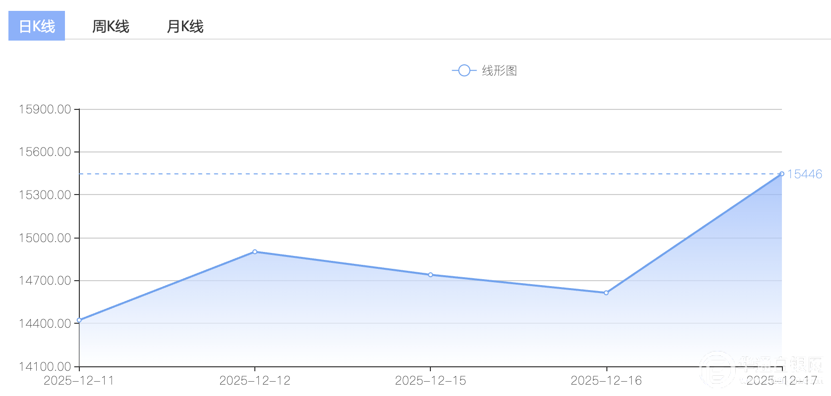 【华通白银网12月18日】•白银价格周四小幅走低,回吐了周三创历史高点的部分涨幅。 •日线图上的超买相对强弱指数被视为促使获利回吐的关键因素。 •看涨的技术面设置支持在较低水平出现逢低买盘的理由。 周四亚洲交易时段,白银吸引了一些卖家,目前在65.75-65.70美元区域附近交易,当日跌幅超1%。不过,银价离前一日触及的历史高点不远,整体技术盘似乎仍坚定地倾向于多头。 华通国标一号银定盘价报15380元/千克,较上一交易日上涨766元/千克。