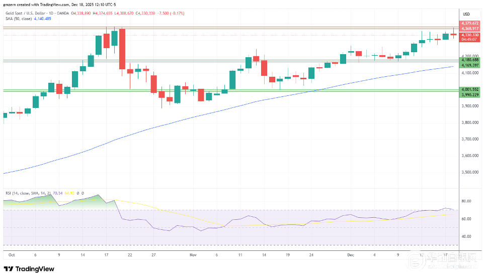 【华通白银网12月19日】•金价未能收于阻力位4370-4380美元上方。 •白银跌向65.00美元水平。 •铂金测试阻力位1975-1985美元。 黄金