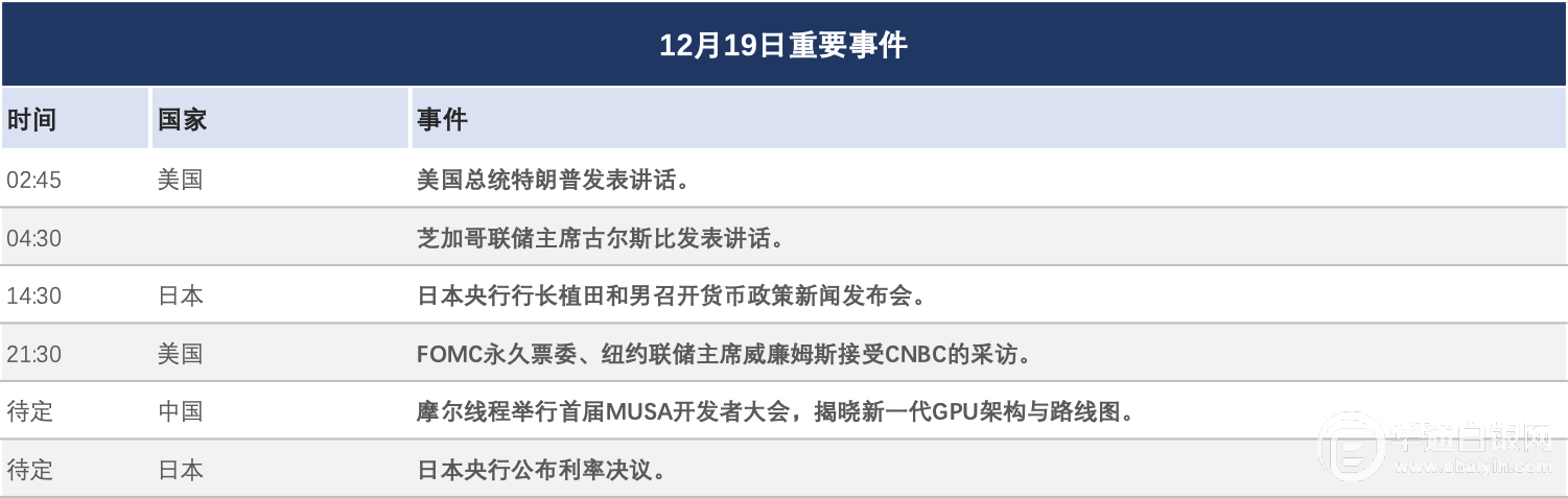 【华通白银网12月19日】•美国通胀数据走软后,市场预期美联储将降息,金价持稳。 •由于美国对俄罗斯的新制裁风险和委内瑞拉封锁供应担忧,油价上涨。 •由于需求强劲,铜价保持高位。 由于美国通胀数据弱于预期,提高了美联储明年降息的希望,金价收复了当日早些时候的失地。 银价大幅下跌,因投资者在银价触及66美元/盎司上方的纪录高位后获利了结。 与此同时,由于对供应减少的担忧提振了投资者的情绪,油价上涨。 此外,由于市场预期美联储将在2026年进一步降息,基本金属价格也出现攀升。 黄金持稳 尽管对最终降息的预期和持续的宏观经济不确定性支撑了金价,但金价的高估值和现有的大量地上黄金库存表明,投资者在承担额外风险方面采取了更为谨慎的策略。 根据最近公布的数据,美国11月份的消费者价格同比上涨2.7%。 这一数字低于路透社调查经济学家预测的3.1%。 数据公布后,联邦基金利率期货显示,美联储在1月会议上降息的可能性略微上升。 Trade Nation资深市场分析师David Morrison表示:“黄金可能需要更长的盘整期,可能维持在较低水平,MACD指标才能回落并重新回到可以开始大幅上涨的水平。” 截至撰写本文时,COMEX黄金合约报4,368.80美元/盎司,与前一收盘价基本持平。 与此同时,纽约商品交易所(COMEX)的白银价格下跌1.8%,至65.693美元/盎司。 “交易员们最终会对进一步推高价格持谨慎态度吗?或者,这仅仅是银价大幅上涨后急需的一次令人屏息的暂停?”David Morrison表示,“两种解释都有可能,但哪种更有可能呢?冒着听起来像破纪录的风险,日MACD指标明显超买。这意味着,无论是牛市还是熊市,投资白银时都要非常谨慎。” 石油上涨 油价周四上涨,原因是投资者评估美国可能对俄罗斯实施更多制裁,以及委内瑞拉油轮遭封锁引发的供应担忧。 美国打算对进出委内瑞拉的受制裁油轮实施封锁,特朗普宣布的这一举措引发了人们对委内瑞拉石油出口未来的担忧。 荷兰国际集团(ING Group)大宗商品策略主管Warren Patterson在一份报告中表示:“这使每天约60万桶的石油出口面临风险,其中大部分出口到中国。” 然而,目前流入美国的原油约为16万桶/天(16万桶/天),这种情况可能会继续下去。 “关键问题是,首先,这种封锁会有多大效果,其次,它会持续多久。这将是决定对石油市场影响的重要因素。” 周三有报道称,美国政府正计划对俄罗斯能源行业实施更严厉的制裁,这加剧了市场的供应风险。 这种增加的风险取决于俄罗斯没有与乌克兰达成和平协议。 Warren Patterson表示:“鉴于盈余前景和布伦特原油交易价格在60美元/桶左右,特朗普有更积极制裁的空间。” 基本金属 受一系列不确定的全球宏观指标、美元在近期反弹后保持稳定以及影响关键行业的特定市场消息的影响,当日基本金属交易的特点是谨慎。 多资产经纪公司Britannia Global Markets金属业务主管Neil Welsh表示,美国科技股近期波动引发的脆弱风险情绪,正将交易员的注意力引向即将到来的通胀数据和美联储声明。 尽管铜价从上周的历史高位回落,但仍处于历史高位。 在这一持续水平之前,受矿业中断、强劲需求以及围绕能源转型的持续叙事的推动,金价今年上涨了三分之一。 Neil Welsh表示:“近期铜价回落,加上美元温和走强和股市风险偏好减弱,突显出铜对短期宏观波动的敏感程度,尽管结构性基本面依然紧张。” 铝和锌目前正在下跌,反映了铜的趋势。然而,技术支撑水平仍然重要,特别是在锌最近从关键价格点反弹之后。 截至撰写本文时,伦敦金属交易所3个月期铜合约价格为11,764.15美元/吨,较前一收盘价上涨0.3%。铝期货合约报2914.75美元/吨,上涨0.4%。 截止北京时间09:40,华通现货白银定盘价报15100元。 本交易日重点关注: