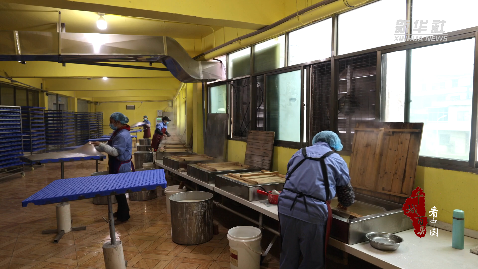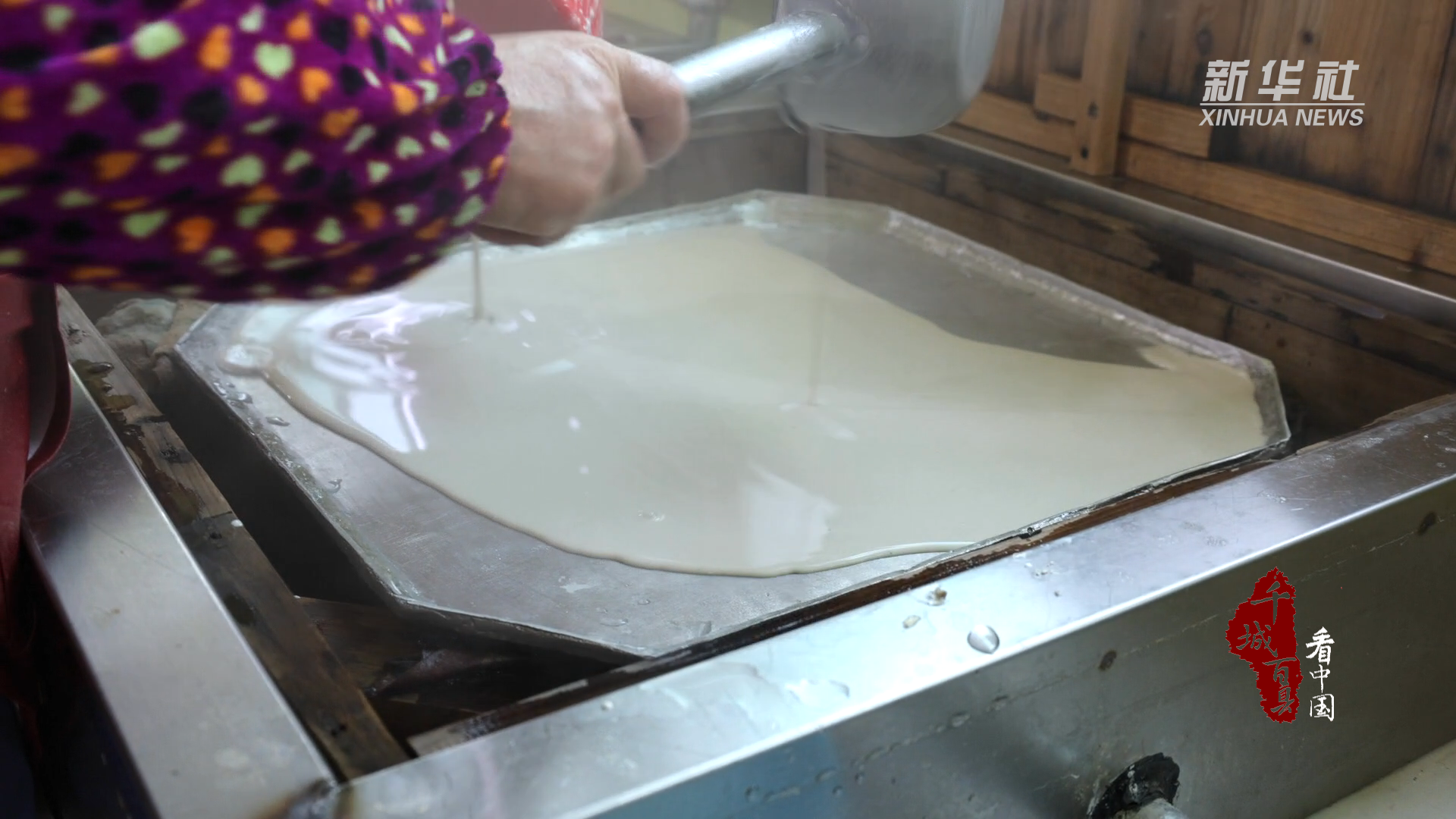 走进当地一红薯粉加工车间,蒸腾的热气中飘散着淡淡的薯香。师傅们动作娴熟地将红薯淀粉浆液舀入蒸箱,约两分钟后,乳白色的浆液便凝成一张张透亮柔韧的粉皮。随后,粉皮被迅速卷起、拉伸抚平成规整的薄片,经冷却定型后,由自动切条机精准切成匀细的粉条,再悬挂于标准化晾晒区自然干燥约两天,即可封装成品。