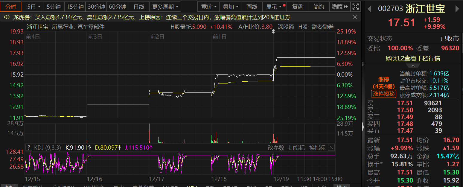 中国汽车工业协会常务副会长兼秘书长付炳锋评价称,“这标志着智能网联汽车迈入量产应用新阶段。这不仅是技术发展的里程碑,更是国家以包容审慎监管统筹高质量发展与高水平安全,护航前沿技术落地、激发产业创新活力的生动实践。” 12月17日,北汽蓝谷发布投资者关系活动记录表公告称,公司极狐牌BJ7001A61NBEV型纯电动轿车近期获得工信部L3级有条件自动驾驶车型产品准入许可,可以实现高速公路和城市快速路单车道内的自动驾驶功能(最高车速80km/h)。申报本次准入试点,产品从多设计维度全面诠释了自动驾驶产品的安全理念。L3级自动驾驶车型产品准入需经过初审入围、择优答辩、测试与安全评估等多流程环节,公司已率先完成所有准入程序并获得许可。测试牌照为临时测试牌照,仅限上路测试使用,距离正式上市销售和正式允许上路通行存在一定的时间周期。公司作为首批通过L3级自动驾驶车型准入许可的企业,已率先进入可以上市销售和上路通行阶段。基于北汽新能源在L3车型产品开发和准入方面取得的领先优势,未来公司计划在中高端品牌持续布局L3车型,部分L3车型产品目前正处于开发阶段。 个股浙江世宝更是连收4个涨停板,为此,公司在12月17日晚间发布股票交易异常波动公告,其中提到,截至本公告日,公司前期披露的信息不存在需要更正、补充之处,公司未发现近期公共传媒报道了可能或已经对本公司股票交易价格产生较大影响的未公开重大信息;公司近期经营情况正常,内外部经营环境未发生重大变化。