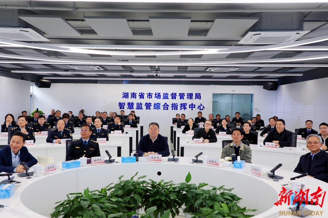近日,省政协主席毛万春率队在省市场监督管理局宣讲调研。图为毛万春在省市场监管局智慧监管综合指挥中心调研。 毛万春一行实地考察了省市场监管局智慧监管综合指挥中心和政务服务大厅,深入了解智慧监管、食品安全“互联网+AI监管”以及“证照联办”等情况。