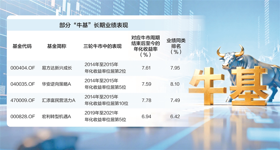 证券时报基金研究院 宁墨 截至12月19日(下同),沪指在2024年大涨12.67%的基础上,年内再涨16.07%,年K线大概率两连阳。行情催化下,主动权益基金迎来业绩爆发,不仅出现近40只主动权益基金(只统计初始基金)年内收益翻倍,永赢科技智选A更是斩获约219%的年度收益,成为2008年以来首只“两倍基”,新“牛基”的亮眼表现再度点燃市场热情。 热闹背后,一个更深层的命题值得深思:那些曾在A股历史牛市中闪耀的昔日“牛基”,今又何在?回顾A股历程,2006年—2007年的“周期牛”、2014年—2015年的“杠杆牛”、2019年—2021年的“核心资产牛”,每一轮都催生过一批顶流“牛基”与投资明星。然而潮水退去,有的穿越多轮牛熊成“常青树”,有的却在风格切换与规模重压下光环褪色。 “牛基”众生相 据证券时报基金研究院统计,能够穿越多轮牛熊的基金凤毛麟角。三轮牛市中年化收益率排名前十的30只基金中,仅5只后续表现持续亮眼,长期收益率稳居同类前列;其余25只基金后续表现同类排名均值超过50%,逐渐回归平庸。 具体来看,2006年至2007年牛市中的一只大盘精选基金,自2008年以来年化收益率达9.12%,同类排名位居前3%,在多轮市场调整中始终保持韧性。2014年至2015年牛市中的易方达新兴成长、华安逆向策略A和汇添富民营活力A,自2016年以来年化收益率均超过7.5%,同类排名保持前10%。2019年至2021年牛市中的宏利转型机遇A,自2022年以来年化收益率达6.94%,同类排名6.42%。 相比之下,多数昔日“牛基”早已光环不再。例如,2006年至2007年牛市中的摩根阿尔法A以及华南一家大型公募旗下基金,自2008年以来年化收益率分别为2.36%和-0.68%,同类排名滑落至后半区。2014年至2015年牛市中的长盛电子信息主题、华商价值精选等基金自2016年以来年化收益率均为负值,同类排名跌至后10%。2019年至2021年牛市中的国投瑞银进宝、农银汇理研究精选等基金,自2022年以来年化收益率均为负数,同类排名多数位于后三分之一。 这种分化并非个例,业内人士指出,牛市中的短期高收益往往掺杂着赛道红利与市场Beta的贡献,而长期业绩才是基金投研能力、风险控制与策略稳定性的真正试金石。多数“牛基”在牛市中凭借集中持仓某一热门赛道脱颖而出,但当市场风格切换、红利消退时,缺乏核心竞争力的产品便难以维持优势。 光环褪色的三大原因 “规模是业绩的敌人”在基金行业早已成为共识,不少昔日牛基的陨落都源于规模的过度膨胀。当基金因短期业绩出色吸引海量资金申购后,调仓灵活度会显著下降,大额资金的进出不仅增加了交易成本,更难以在中小盘股等弹性领域布局,获取超额收益的难度呈指数级增长。 上述华南一家大型公募旗下基金的历程较具代表性,该基金在2006年末规模(不同基金份额合并计算,下同)仅31.67亿元,凭借2007年牛市中的亮眼表现,年末规模迅速膨胀至400.18亿元,成为当时市场瞩目的“百亿巨基”。但规模激增后,基金的投资灵活度逐渐降低,后续规模明显萎缩,2025年9月末该基金规模仅为34.54亿元,2008年以来年化收益跌至-0.68%,同类排名垫底。 过度依赖单一明星基金经理,是不少牛基难以穿越周期的重要原因。基金的投资策略、选股逻辑往往与核心基金经理深度绑定,一旦灵魂人物离职或投资能力圈未能适应市场变化,基金业绩便极易出现“断崖式”下滑。 2019年至2021年期间,赵诣管理的农银汇理研究精选和农银汇理新能源主题A,年化收益率分别达79.12%和76.86%,分列主动权益基金第2名和第4名。2022年3月赵诣离职后,这两只基金的规模明显缩水,2025年9月末规模较2021年末高峰时降幅均超60%,2022年以来的年化收益率分别为-8.71%和-10.6%,同类排名分别为88.58%、92.92%,彻底褪去明星光环。 持仓期过短、风格频繁漂移,也是许多牛基业绩褪色的关键因素。部分基金为追逐短期热点,不断调整投资方向,看似灵活应变,实则缺乏稳定的投资框架,最终在市场轮动中反复踏空,难以积累长期收益。 2010年成立的中信保诚中小盘A便是典型案例。该基金自成立以来交易极为频繁,2010年至2024年平均持仓时长均值仅为0.14年,前十大重仓股核心行业几乎每年都有变化。虽然该基金在2019年至2021年的牛市中凭借精准踩中电子、新能源等热点跻身前十,但当赛道退潮后,业绩迅速变脸,2022年以来年化收益率为-4.23%,同类排名69.62%,长期表现波动明显。 从明星“造牛”到体系“育牛” 公募基金行业生态正经历一场深刻的结构性变革。随着监管部门推动长周期考核机制落地,行业正在从过去注重短期排名的“造星模式”,转向追求价值投资,获取稳健回报的“体系化作战”,这与长青基金的生存逻辑不谋而合。 数据清晰勾勒出“长寿基金”的核心画像,其穿越周期的能力背后是多重关键因素的支撑。稳定的投研团队是基石,三轮牛市年化收益率排名前十且后续表现亮眼的基金易方达新兴成长、华安逆向策略A、汇添富民营活力A、宏利转型机遇A等,其团队稳定性指标均优于行业平均。易方达基金、华夏基金等公司近十年基金经理内部培养率超过90%,通过完善的人才梯队建设,避免了因核心人员变动导致的策略断层,为业绩持续提供了坚实保障。 强大的风险控制能力是穿越熊市的关键。在2014年至2015年牛市中表现突出的宏利转型机遇A、汇添富民营活力A、华安逆向策略A等基金,在2018年、2022年两个市场明显调整的年份,最